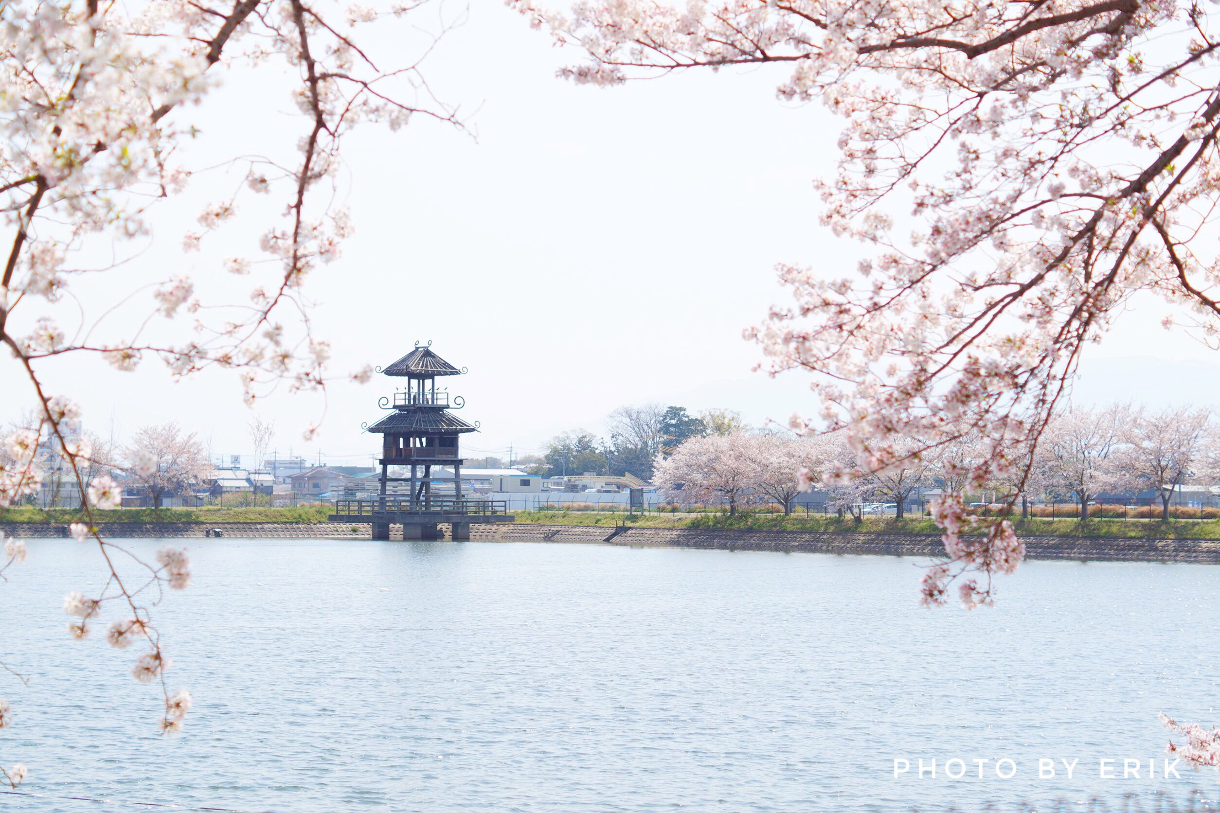 春には、ピンクの桜が池をぐるりと囲みます。