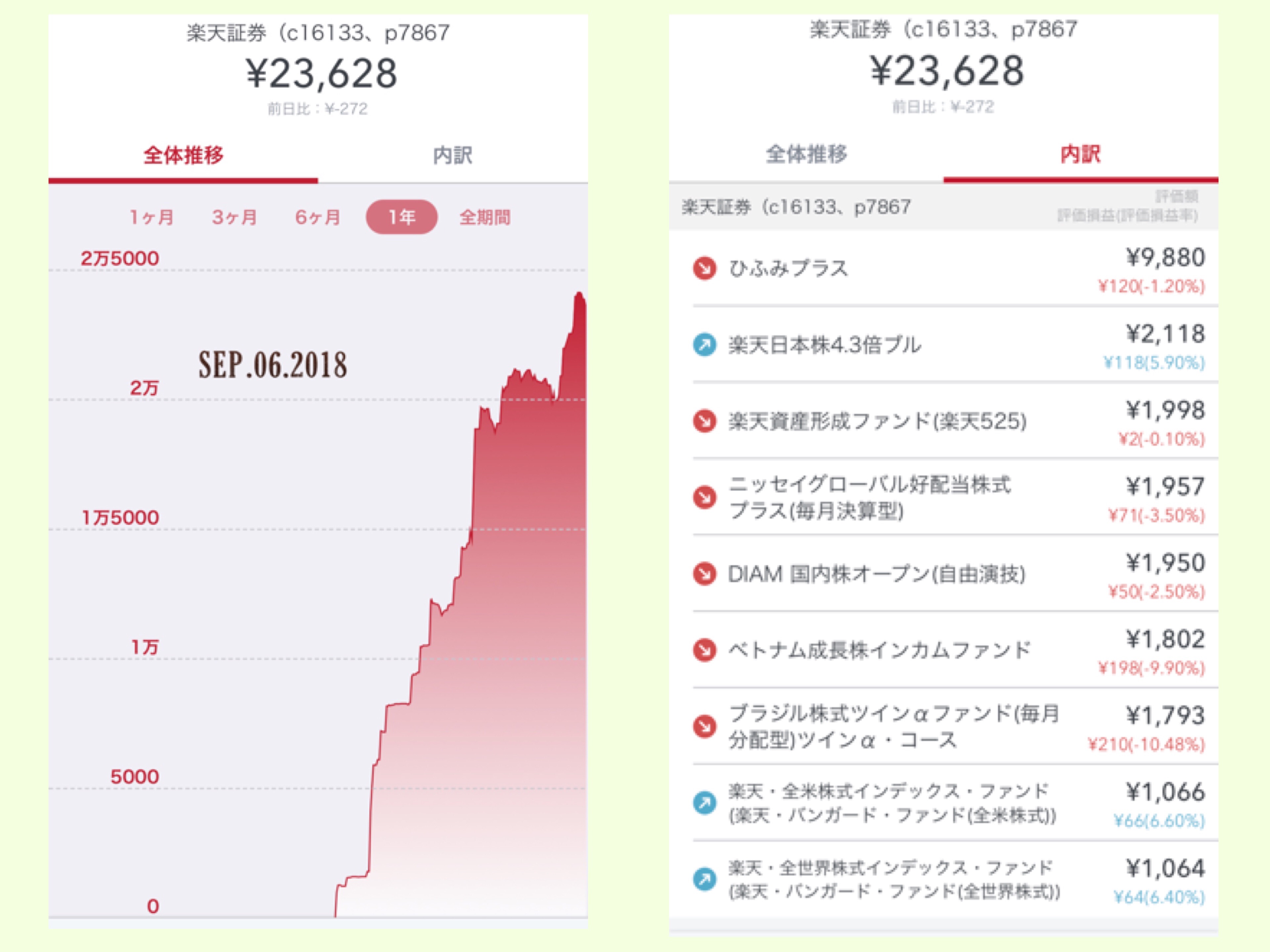 そうそう、楽天ポイントで投資信託も、ボチボチゆるーく続けています。