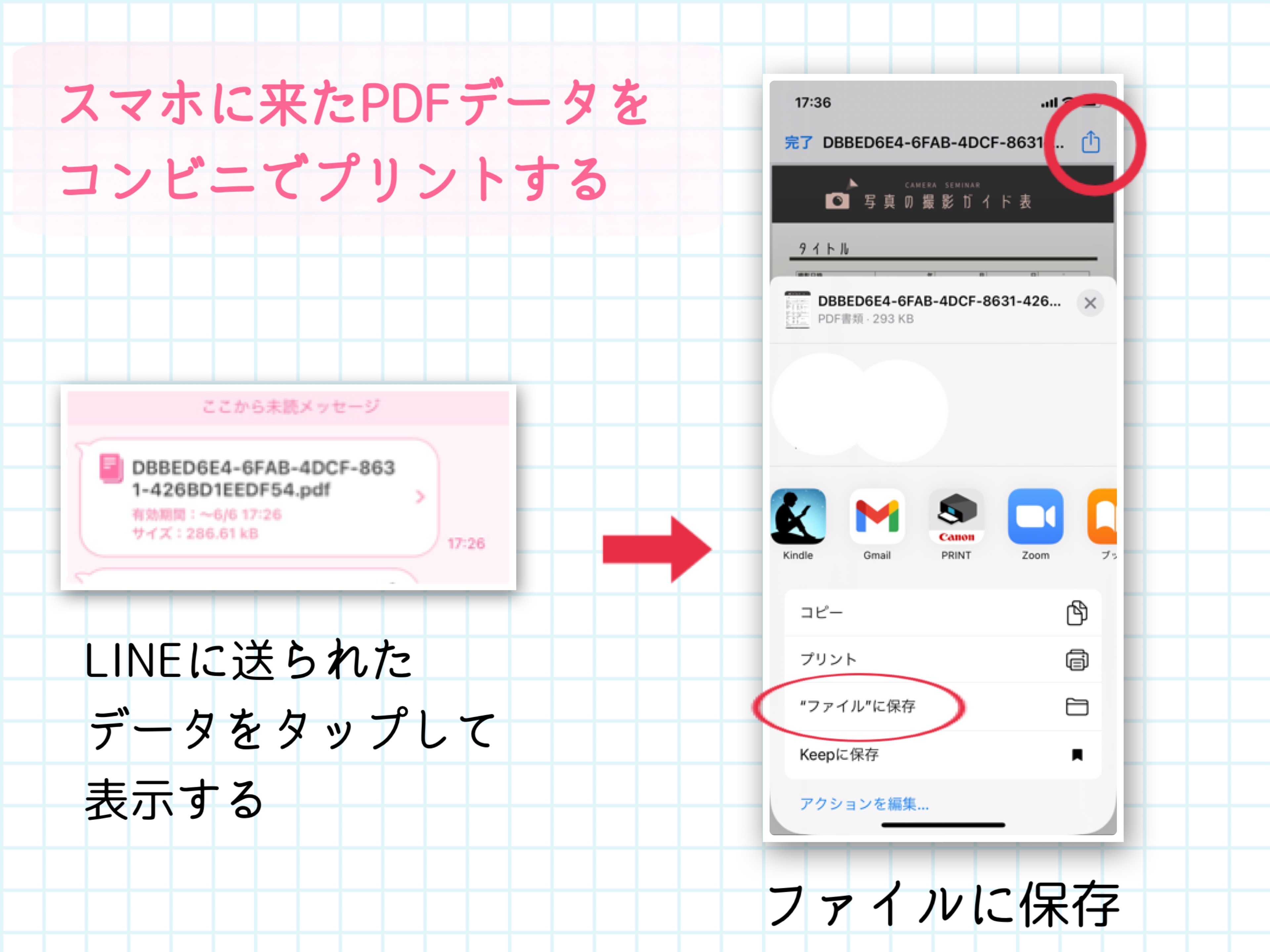 LINEに送られてきたPDFデータを開いて、