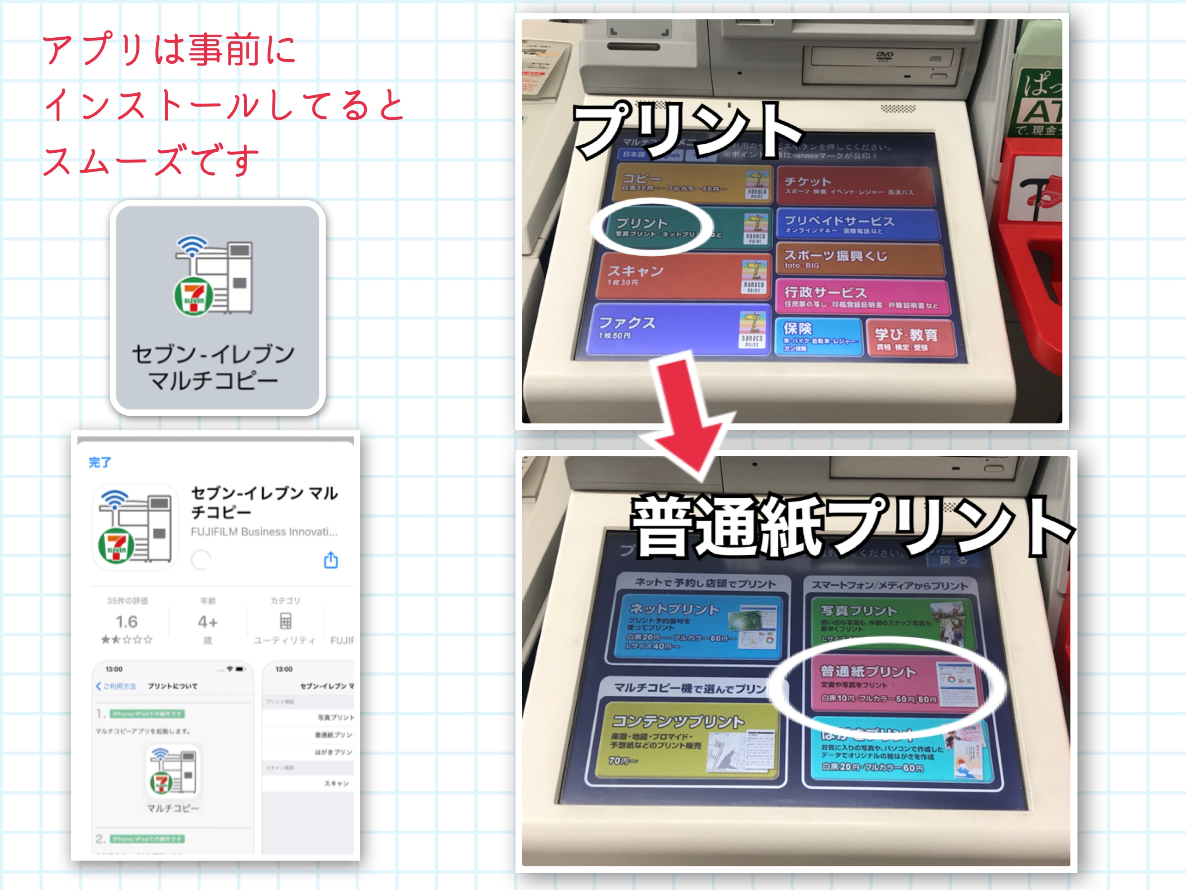 セブンイレブンのマルチコピーのアプリを