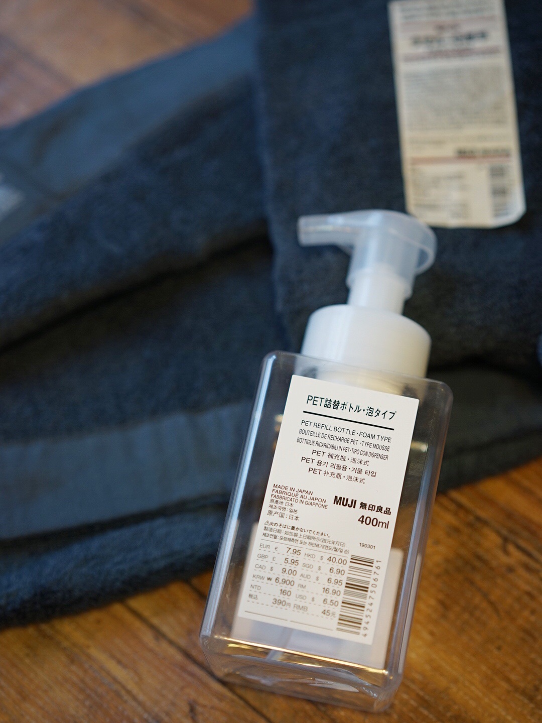 お風呂場の、100均で買った泡ボトルが壊れたので無印で一緒に買ってきました。