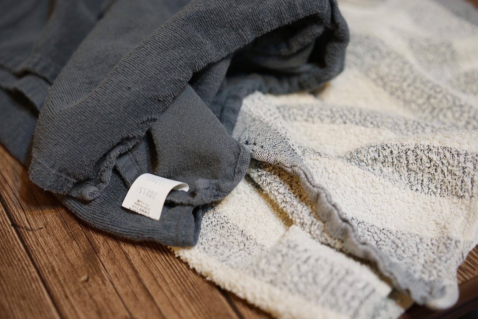 シマシマ柄のタオルは、ヨレヨレにはならないけど、端が細め。