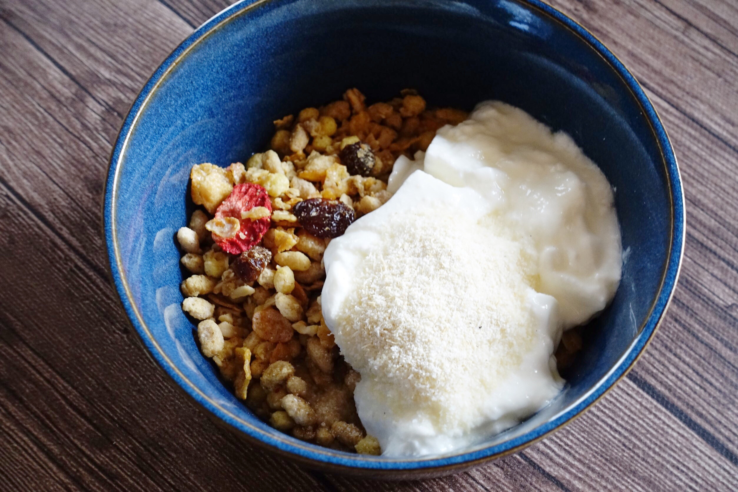 ヨーグルトだけでは、シリアルがふやけないので、