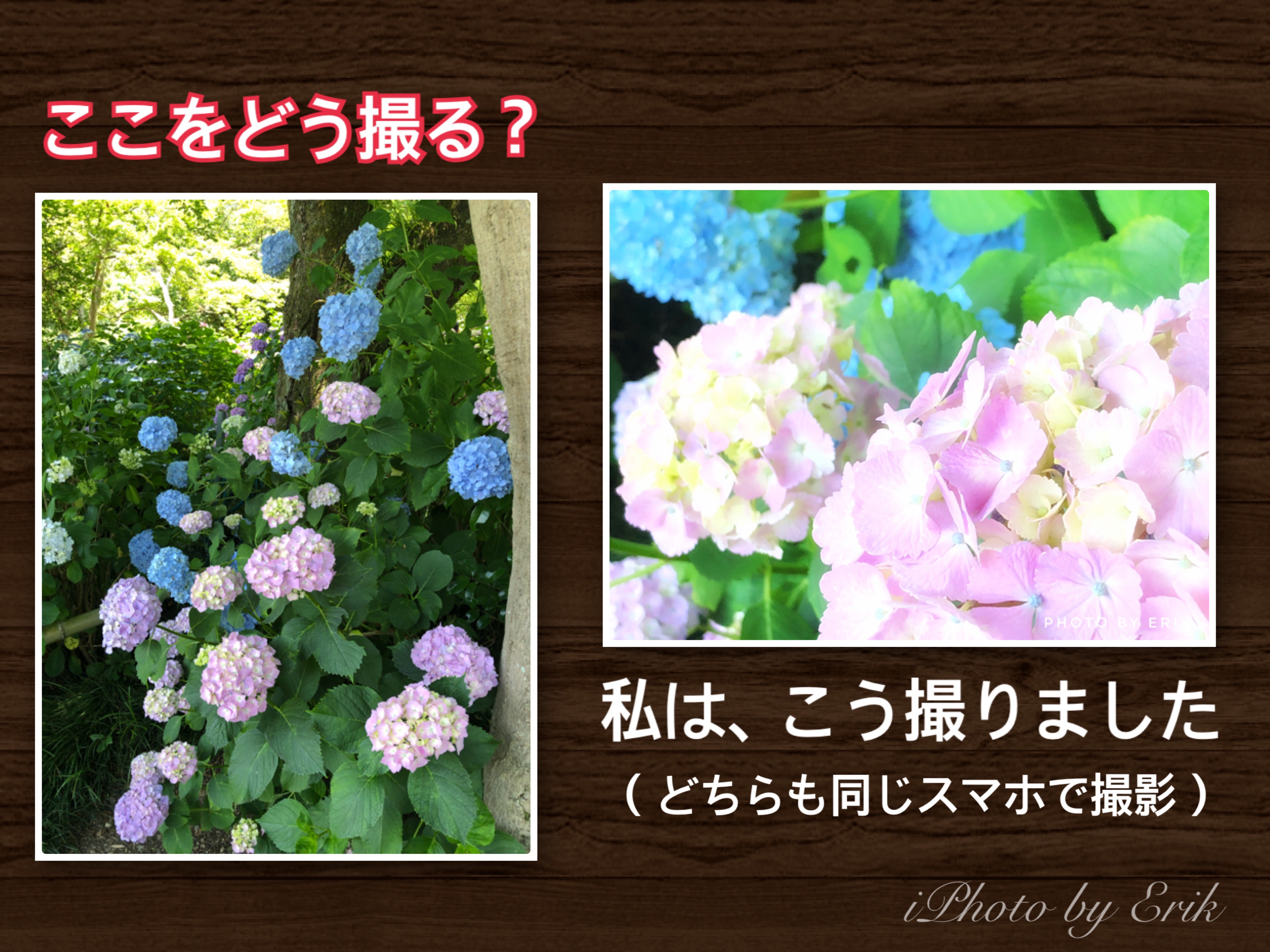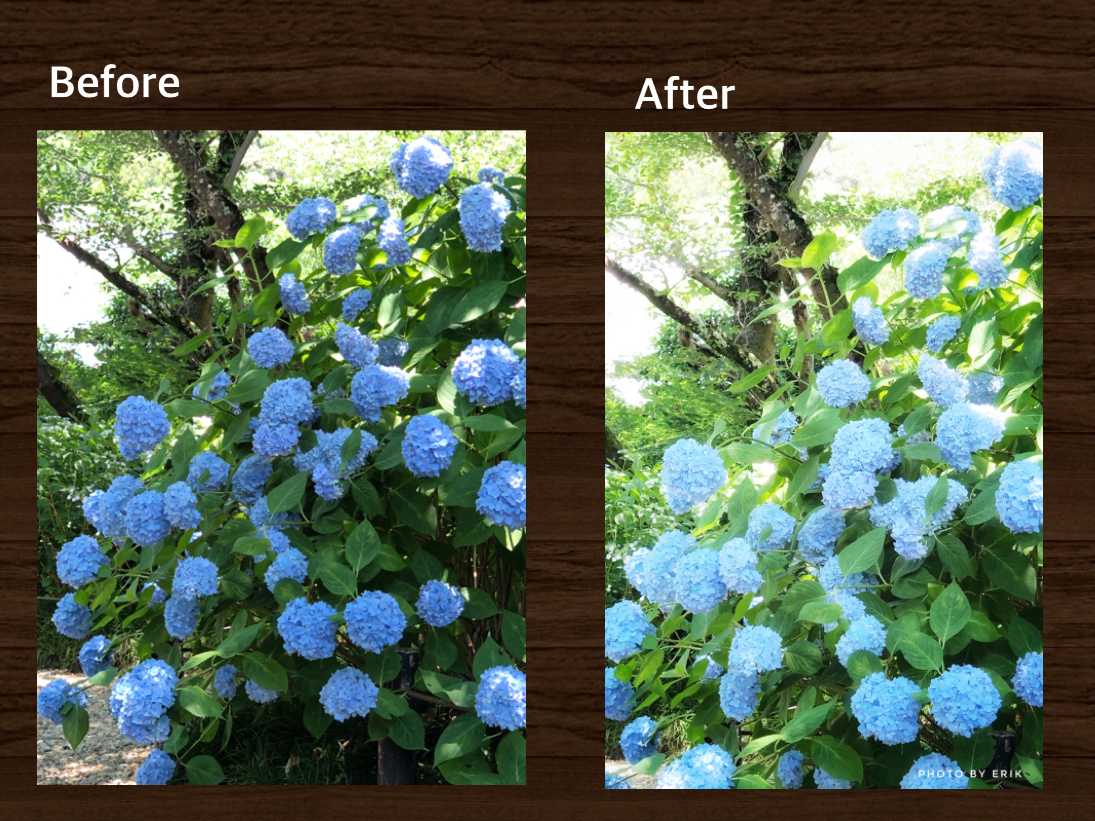 元の写真も、あじさいが満開でキレイなのでダメってわけではないんだけど、ちょっとメリハリに欠けるような。
