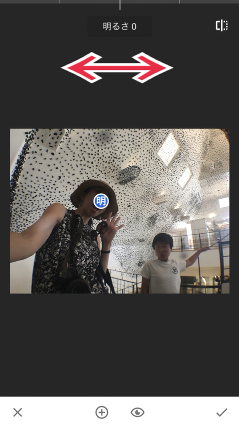 右に動かせば明るくなり、