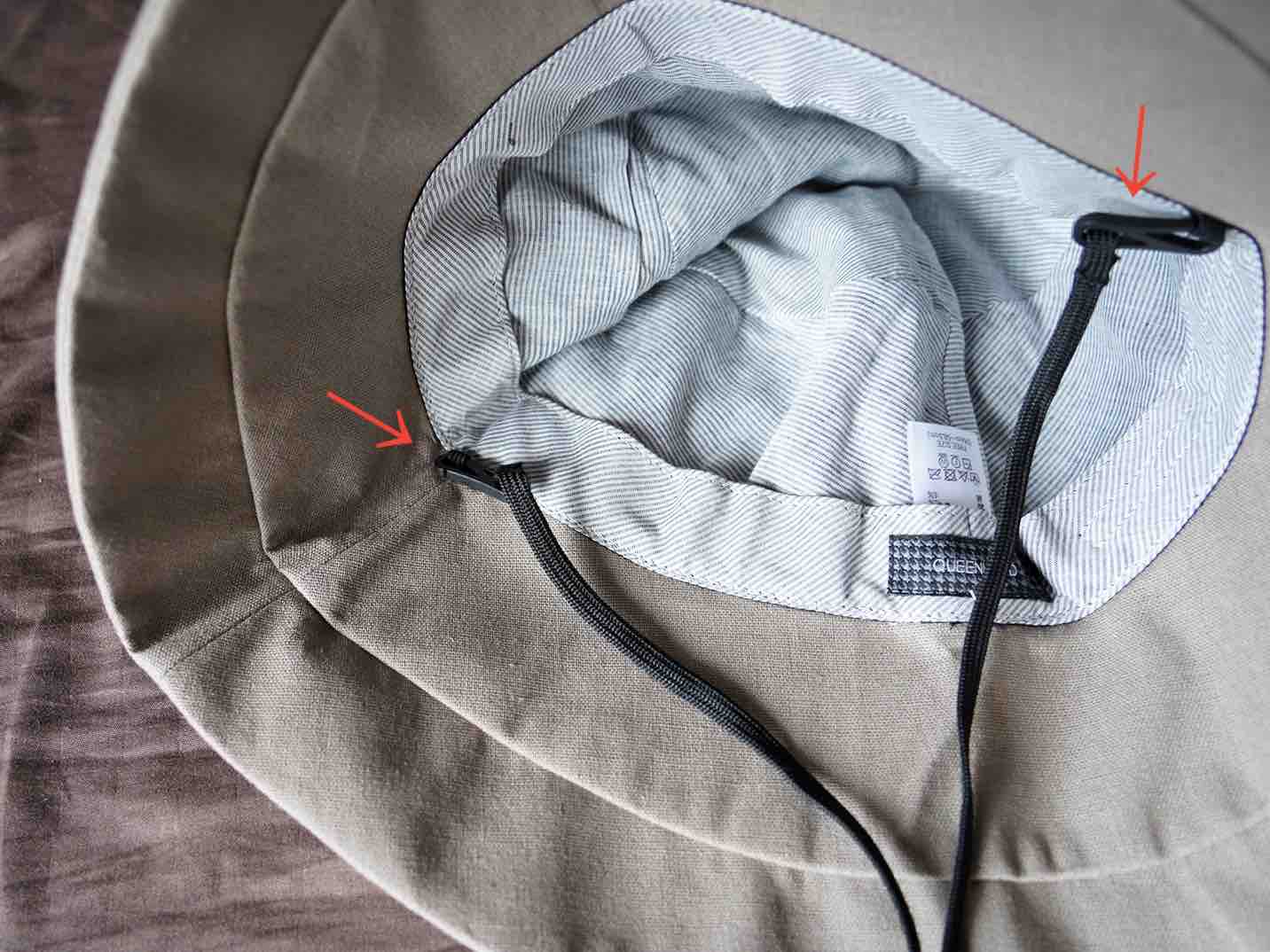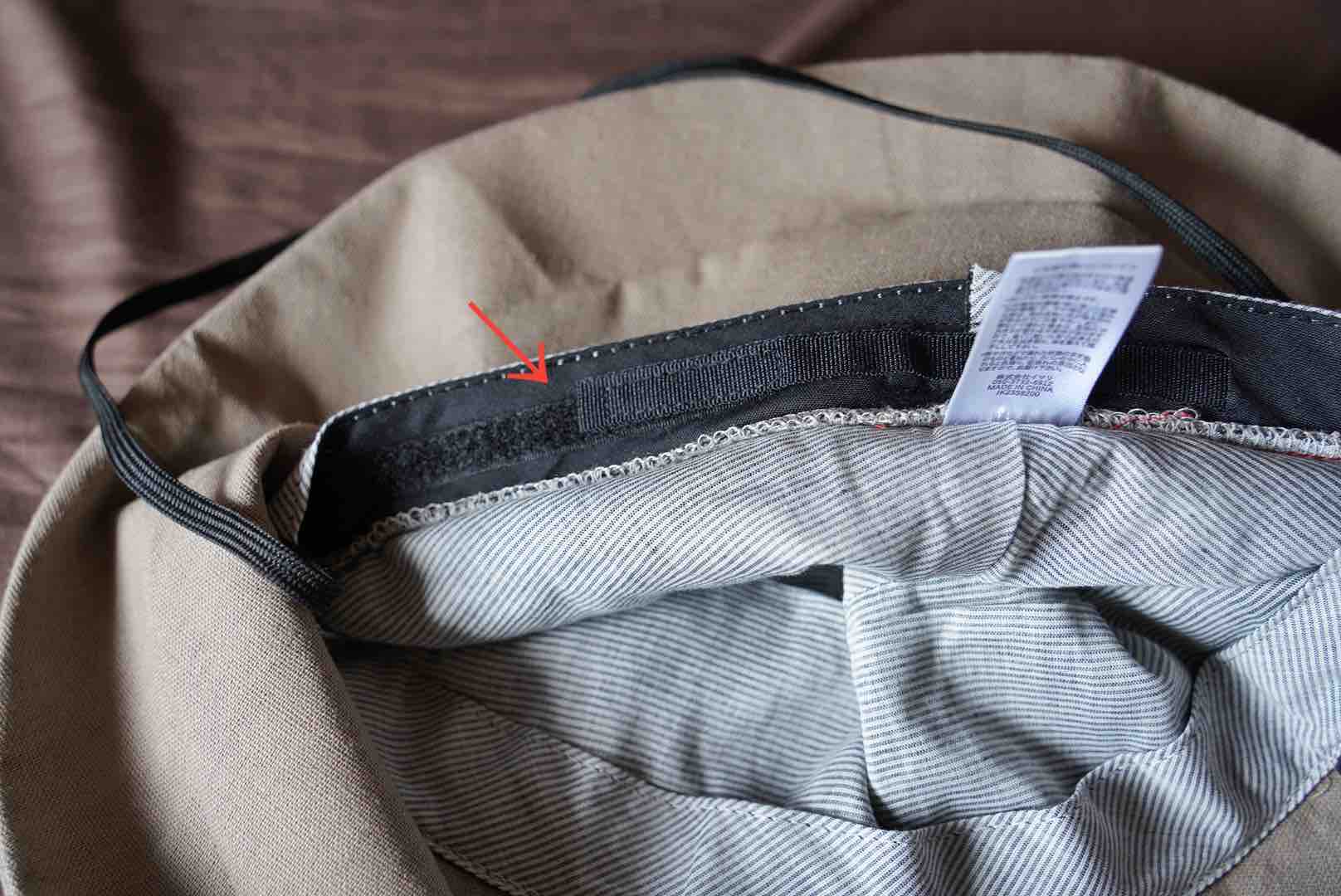 帽子の内側にサイズ調整のマジックテープがあるので
