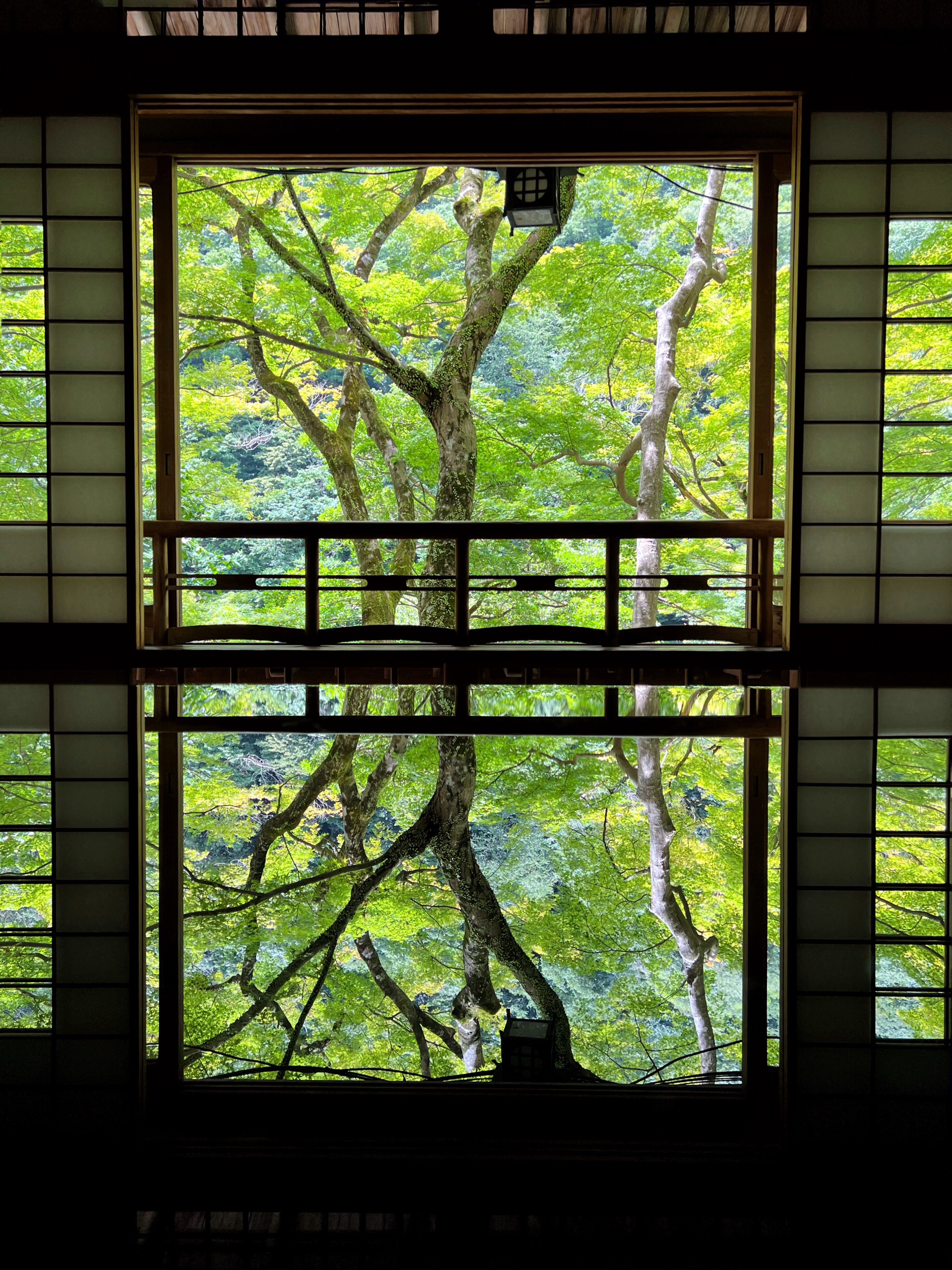 外の景色がキレイに写り込んで