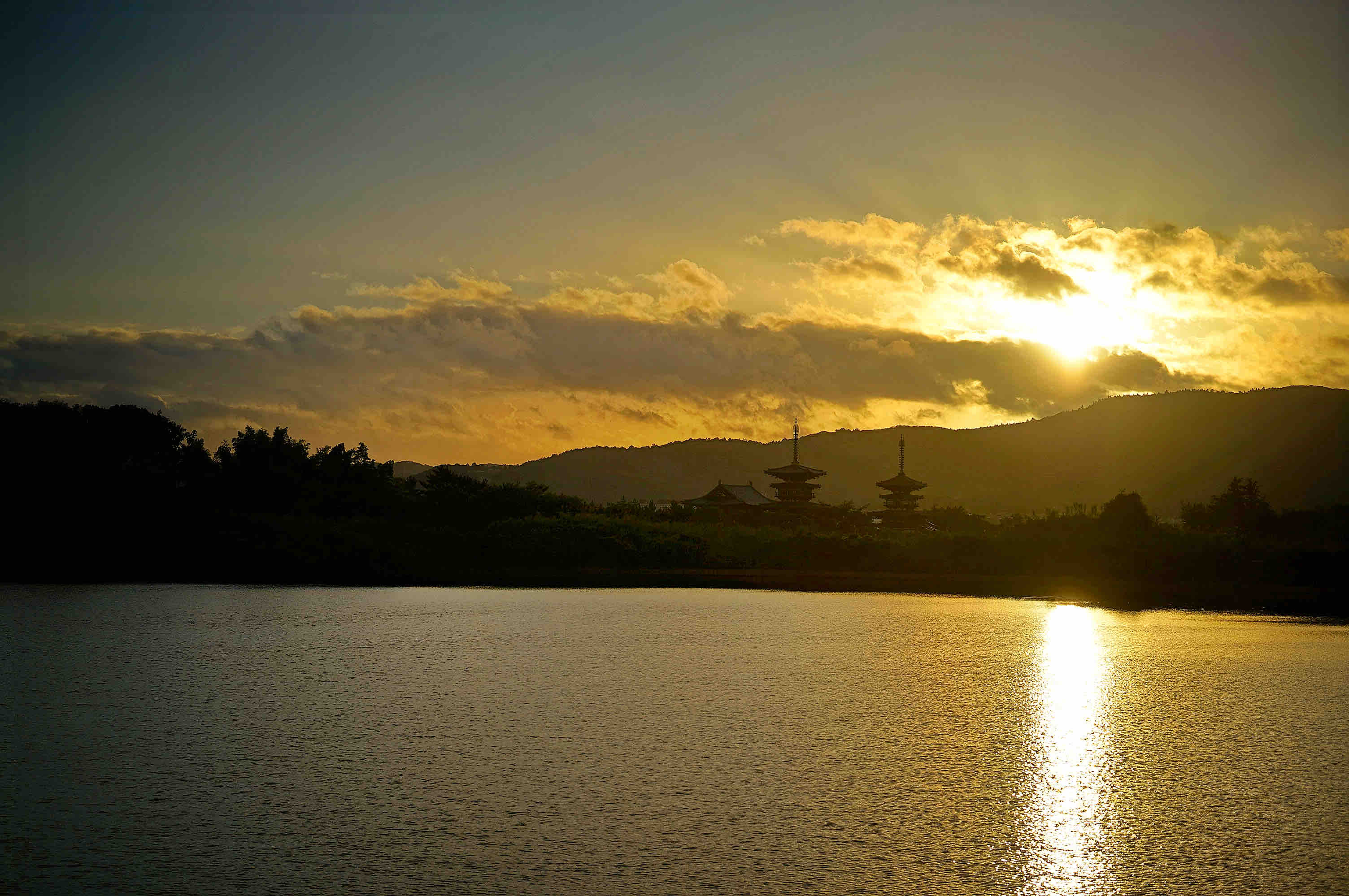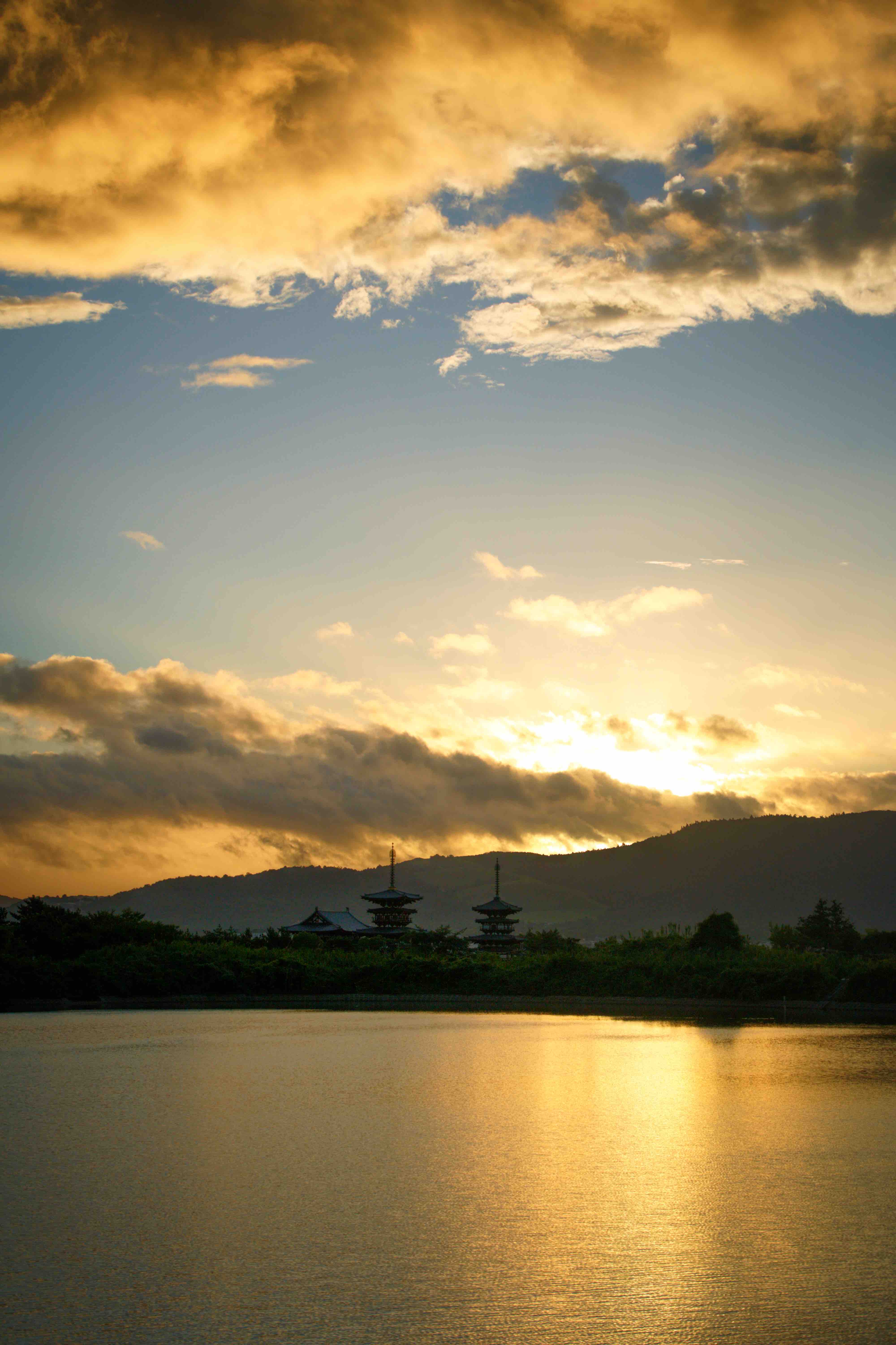 太陽が昇ってきたので、薬師寺と一緒には
