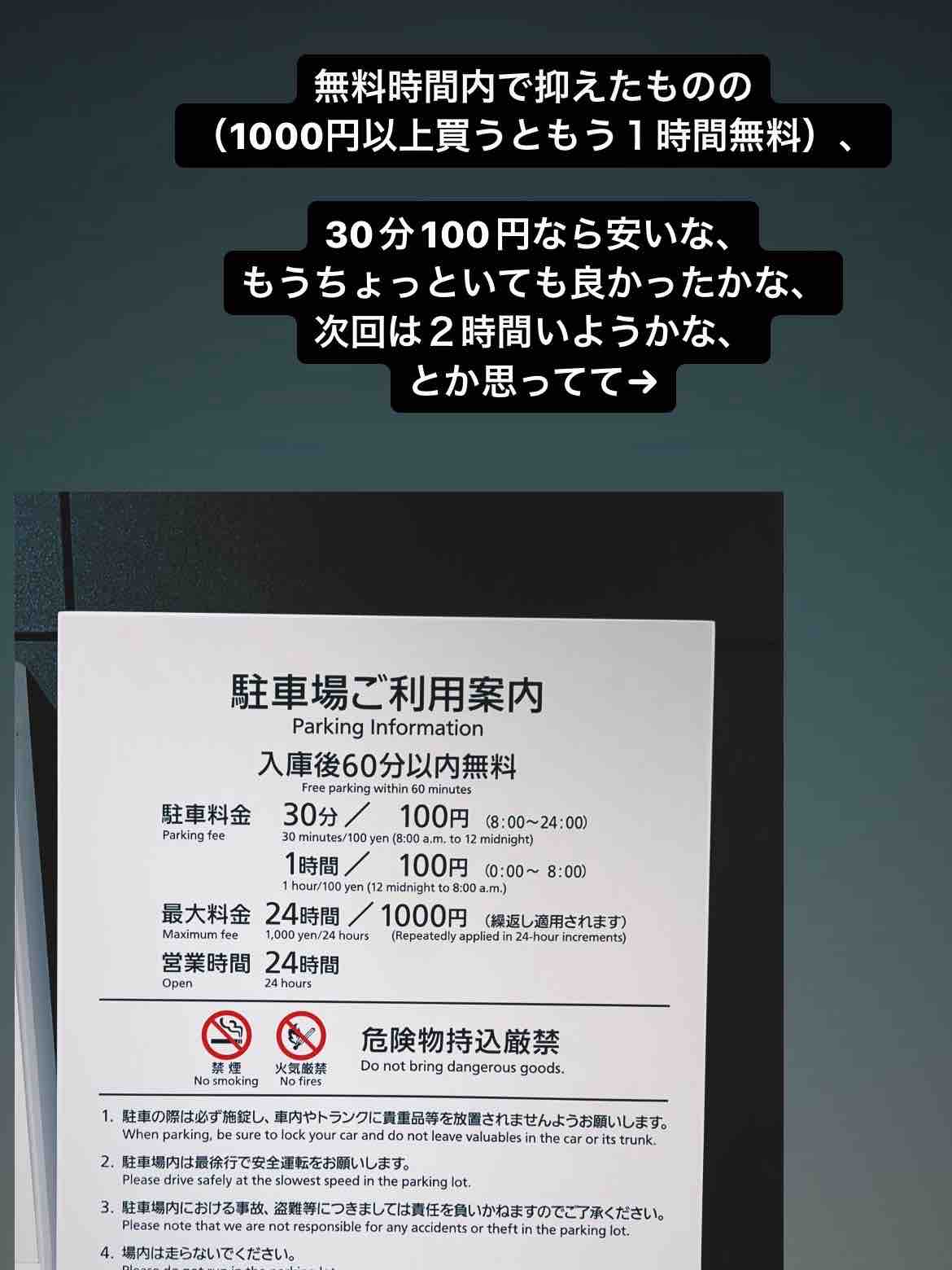 施設内で、1,000円以上買うと、追加1時間無料で、