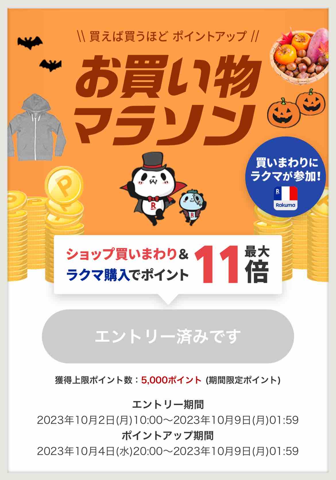10/4 楽天お買い物マラソン スタート2時間限定・店内全品対象 最大50%OFFクーポン