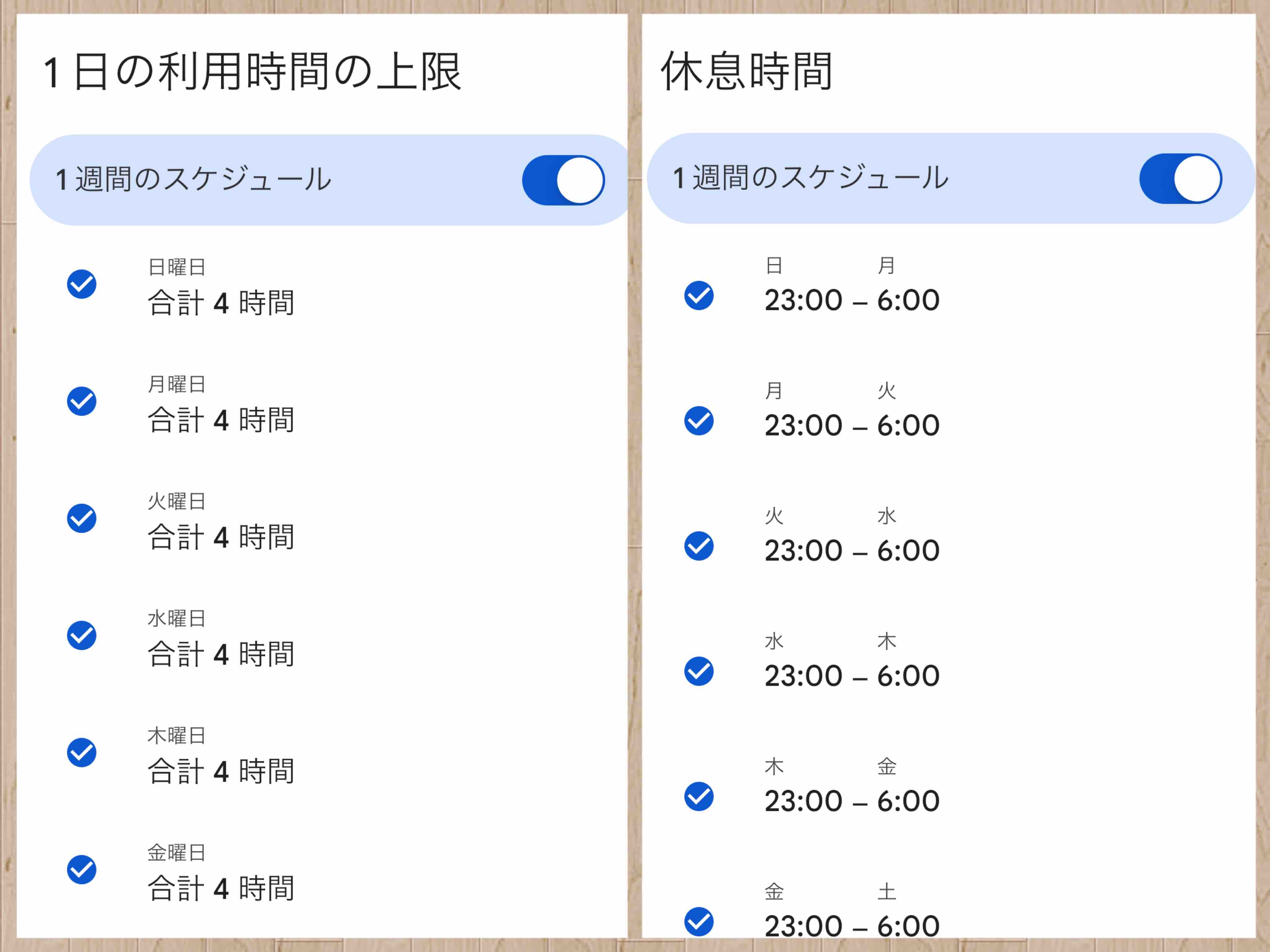 ※ 利用時間は、前のスマホの削除ができてなくて2台分の数字になっちゃってるけど、実際は半分の2時間です。
