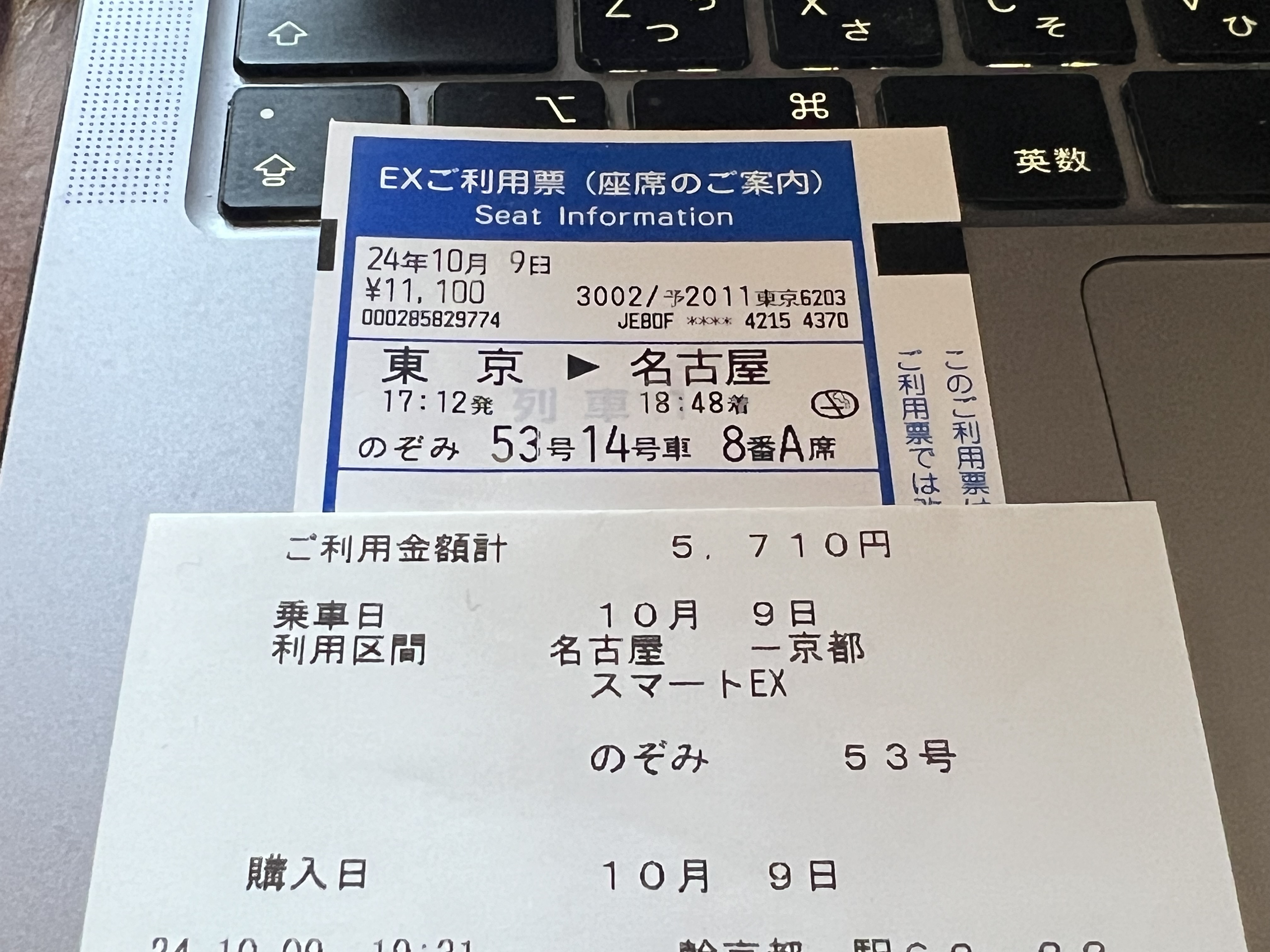 ちなみに、東京〜京都は、