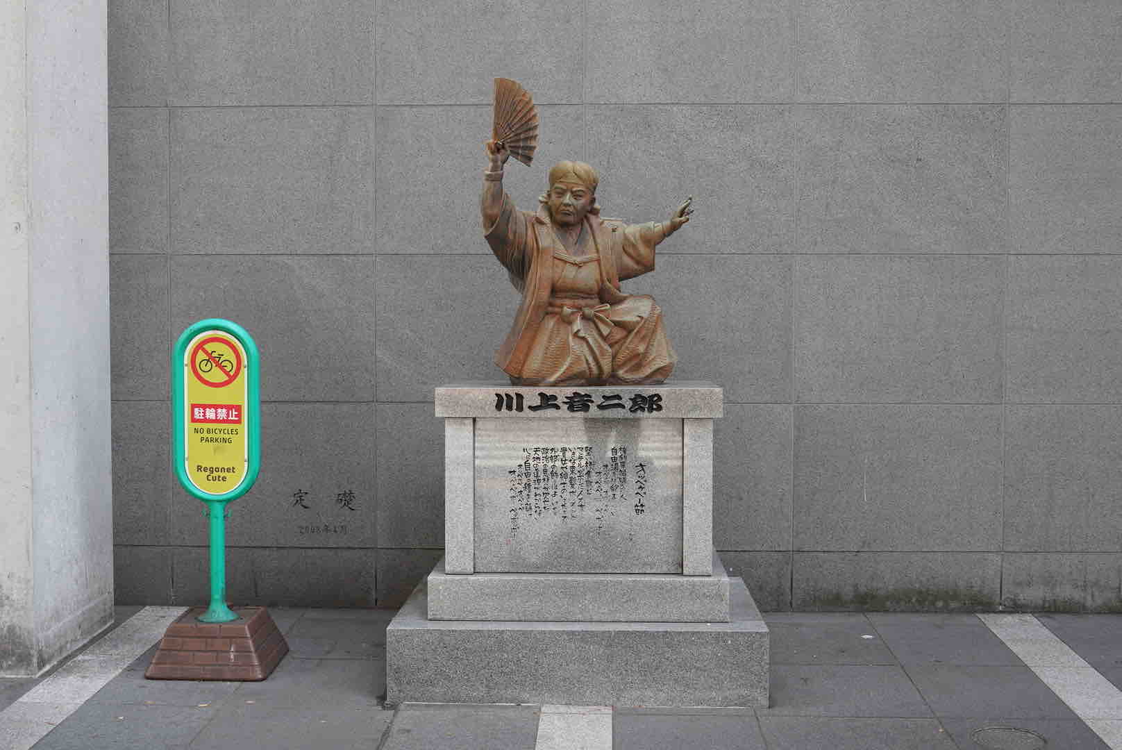 川上音二郎の像。