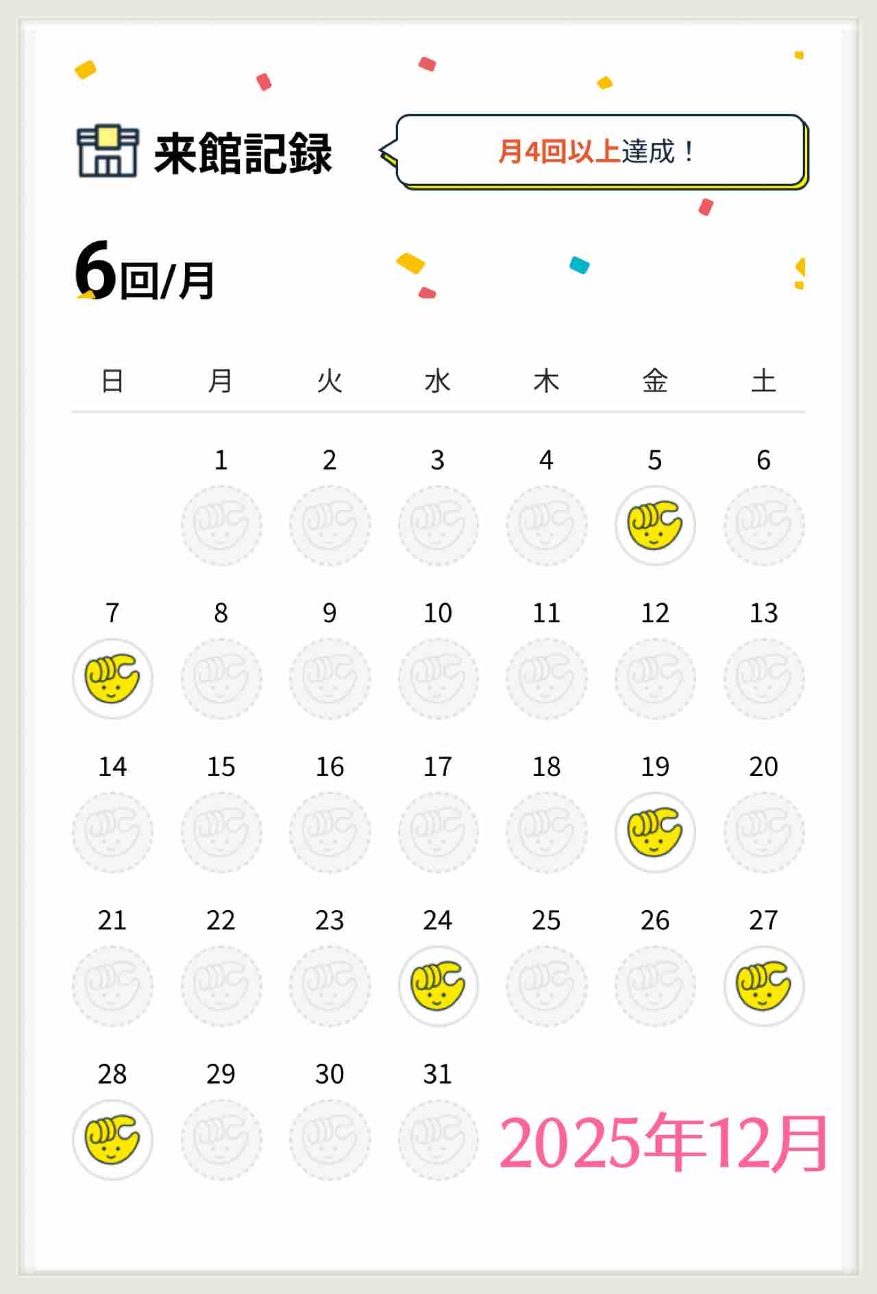 なので、12月の来店記録は6回だけど
