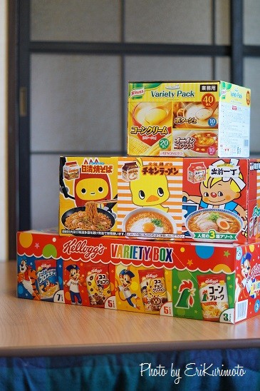 乾麺3種、粉スープ3種、シリアル4種を