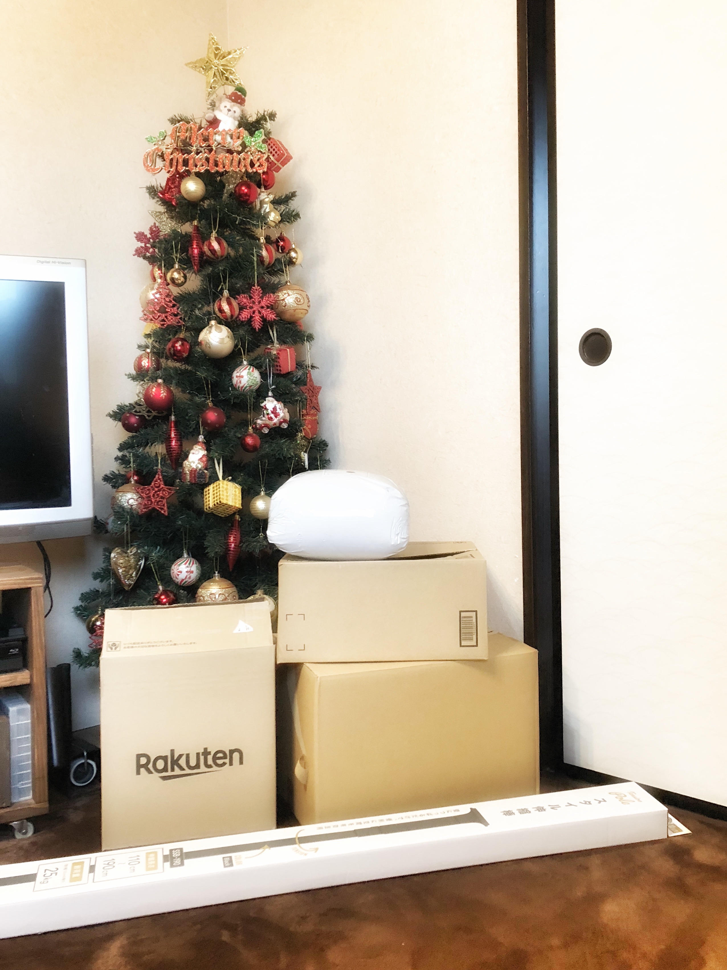 クリスマスツリーの前に置くと、