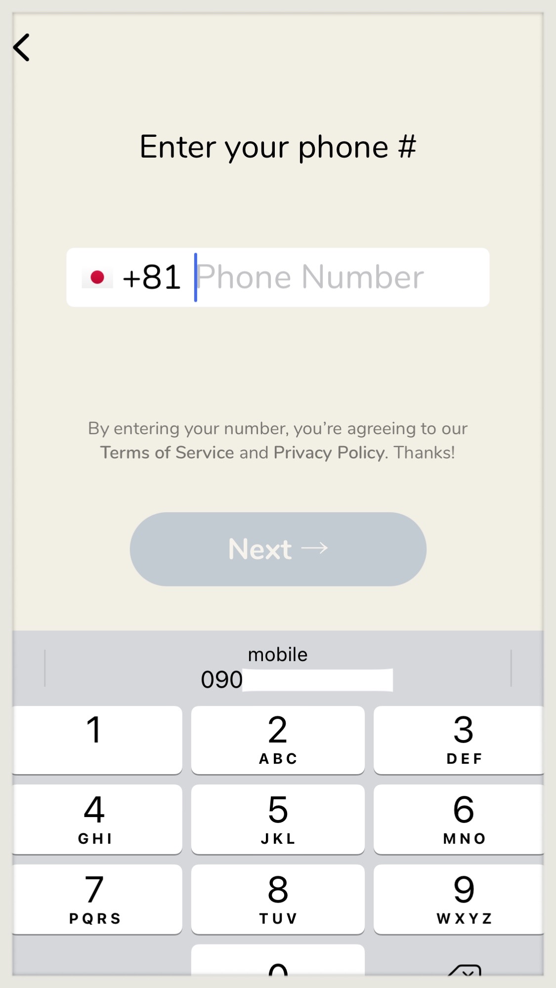 電話番号で登録。