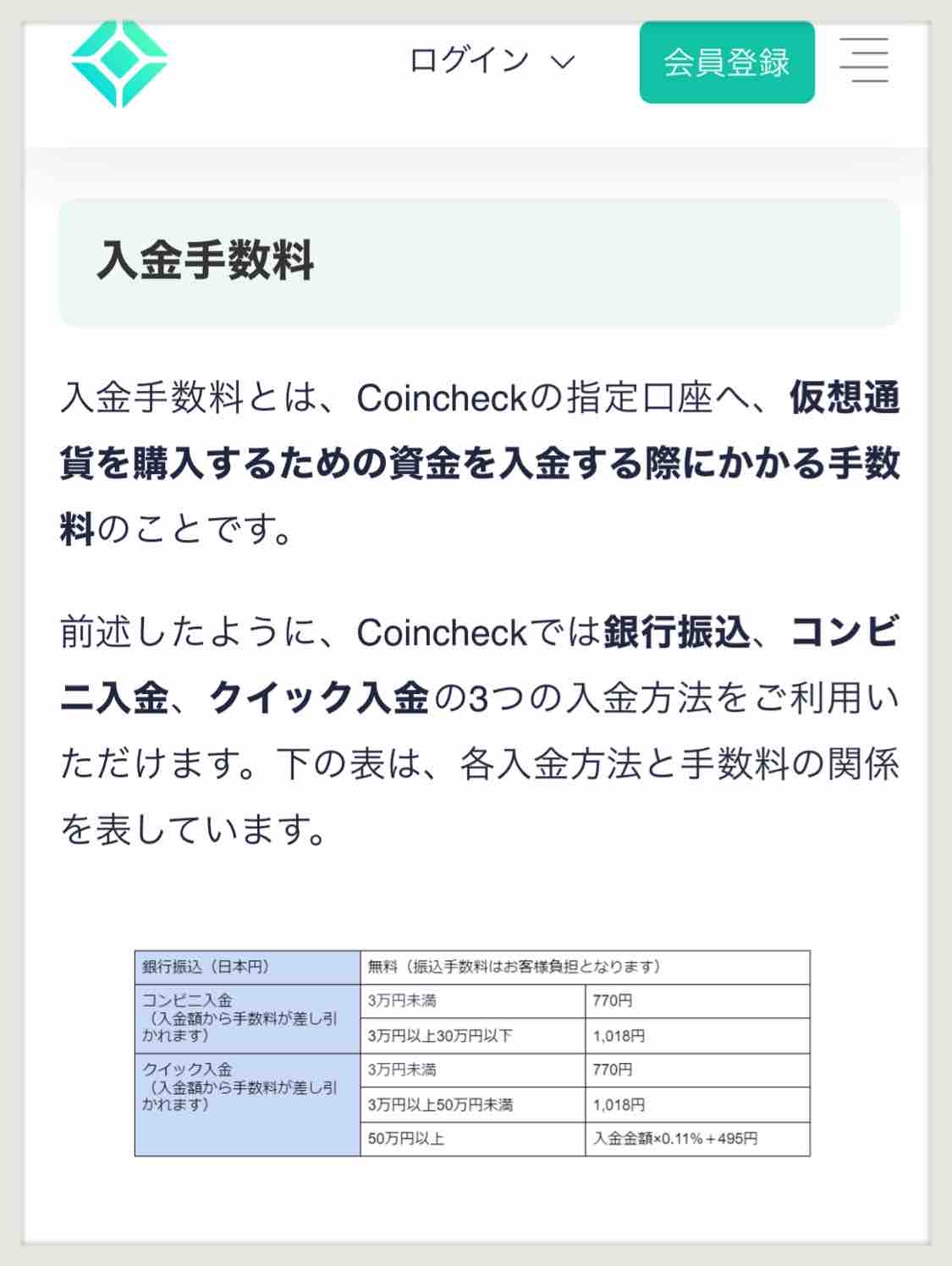 コインチェックにお金を入れる手数料の話。