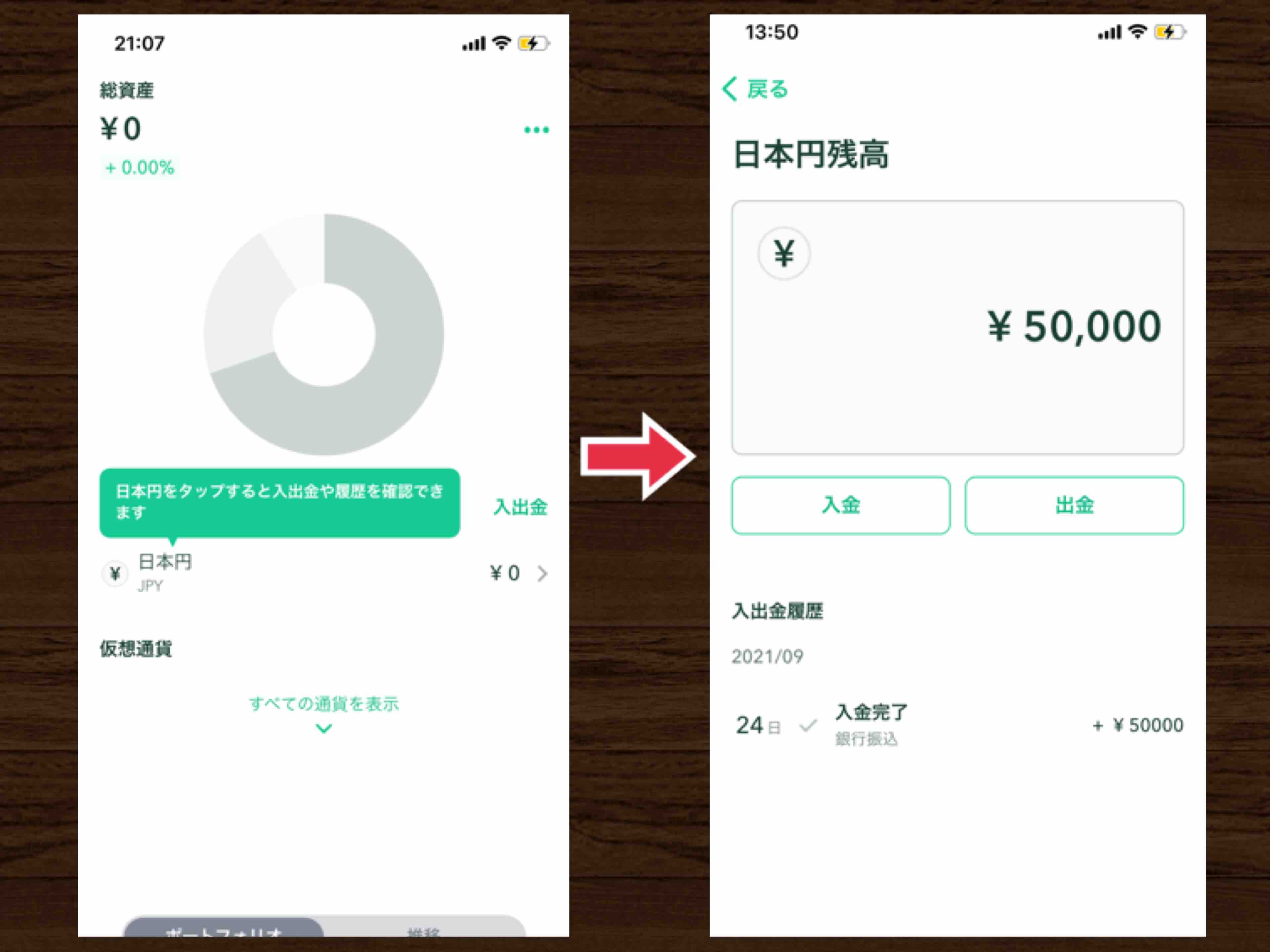 5万円入金したうち、