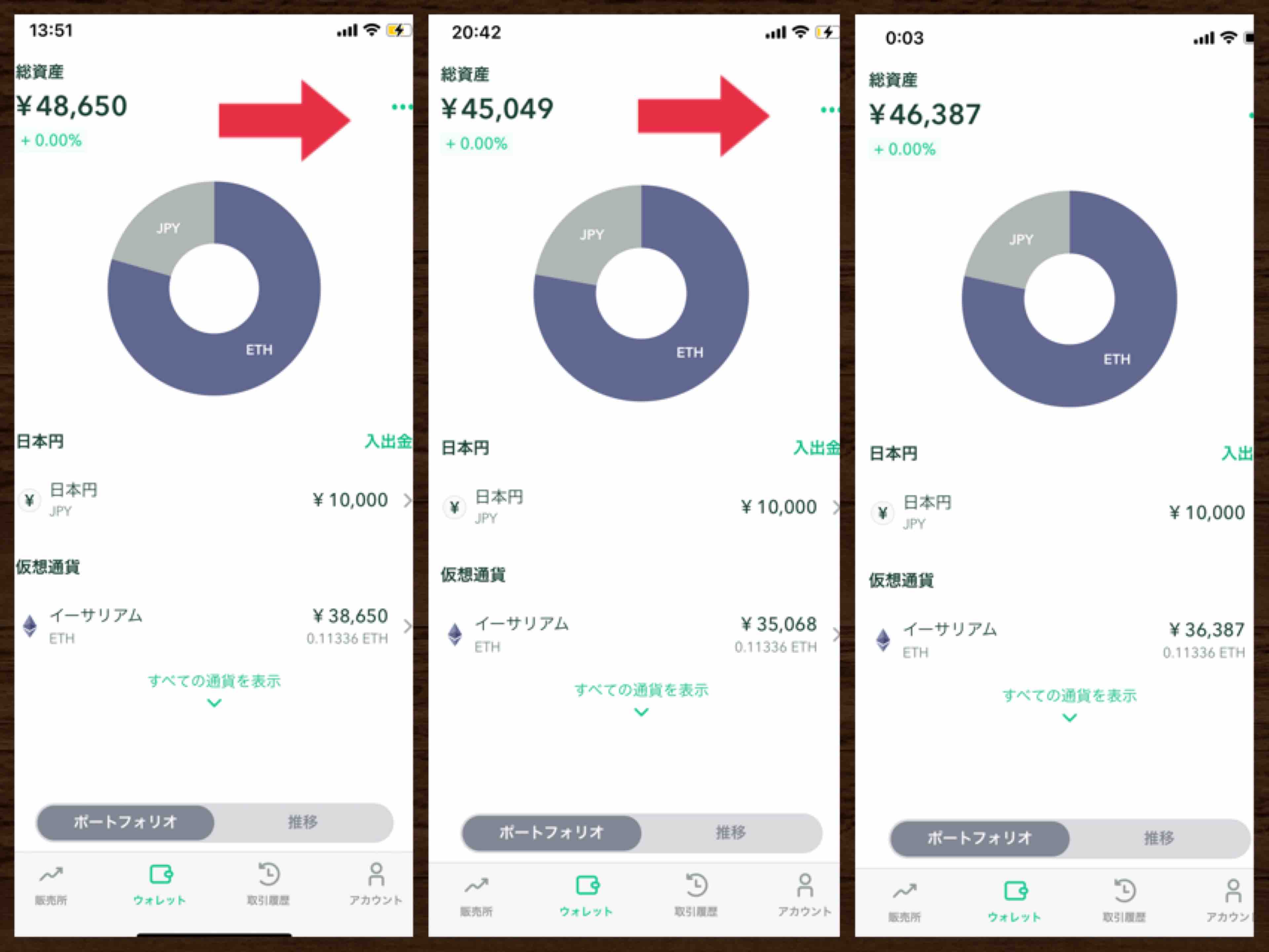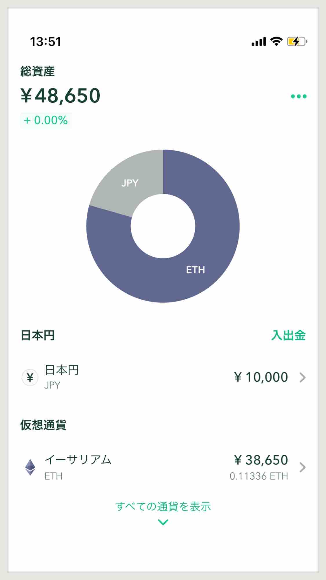 で、この13:51にイーサリアムをポチった後、