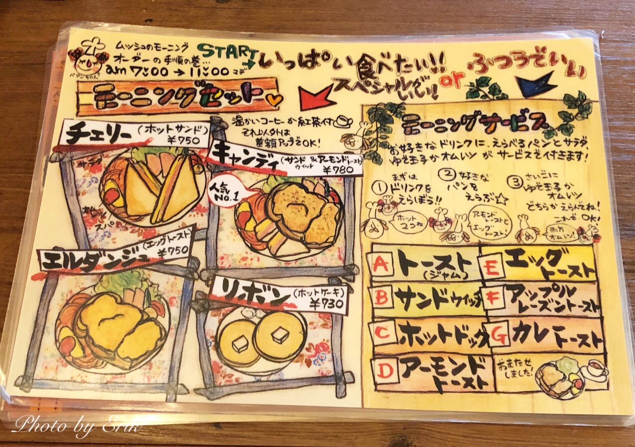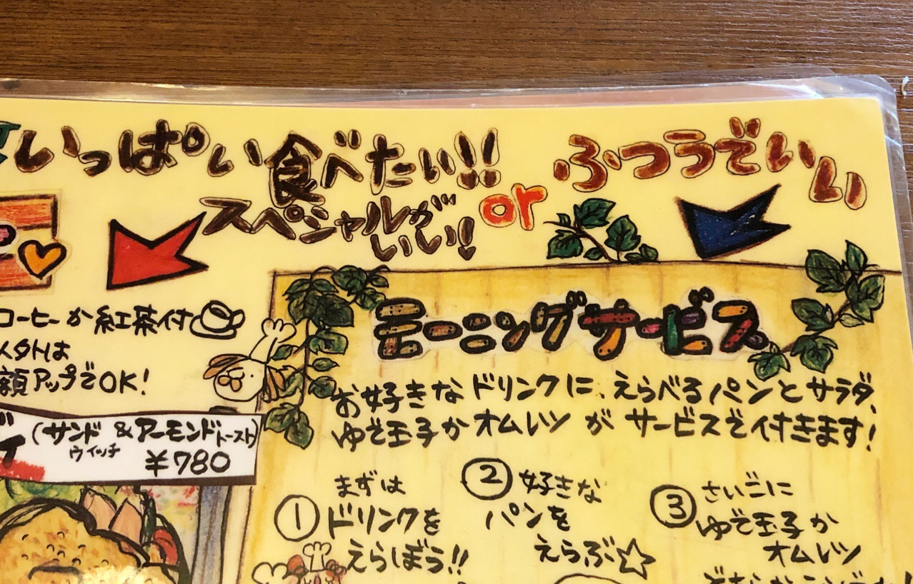こちら、モーニングのメニューです。