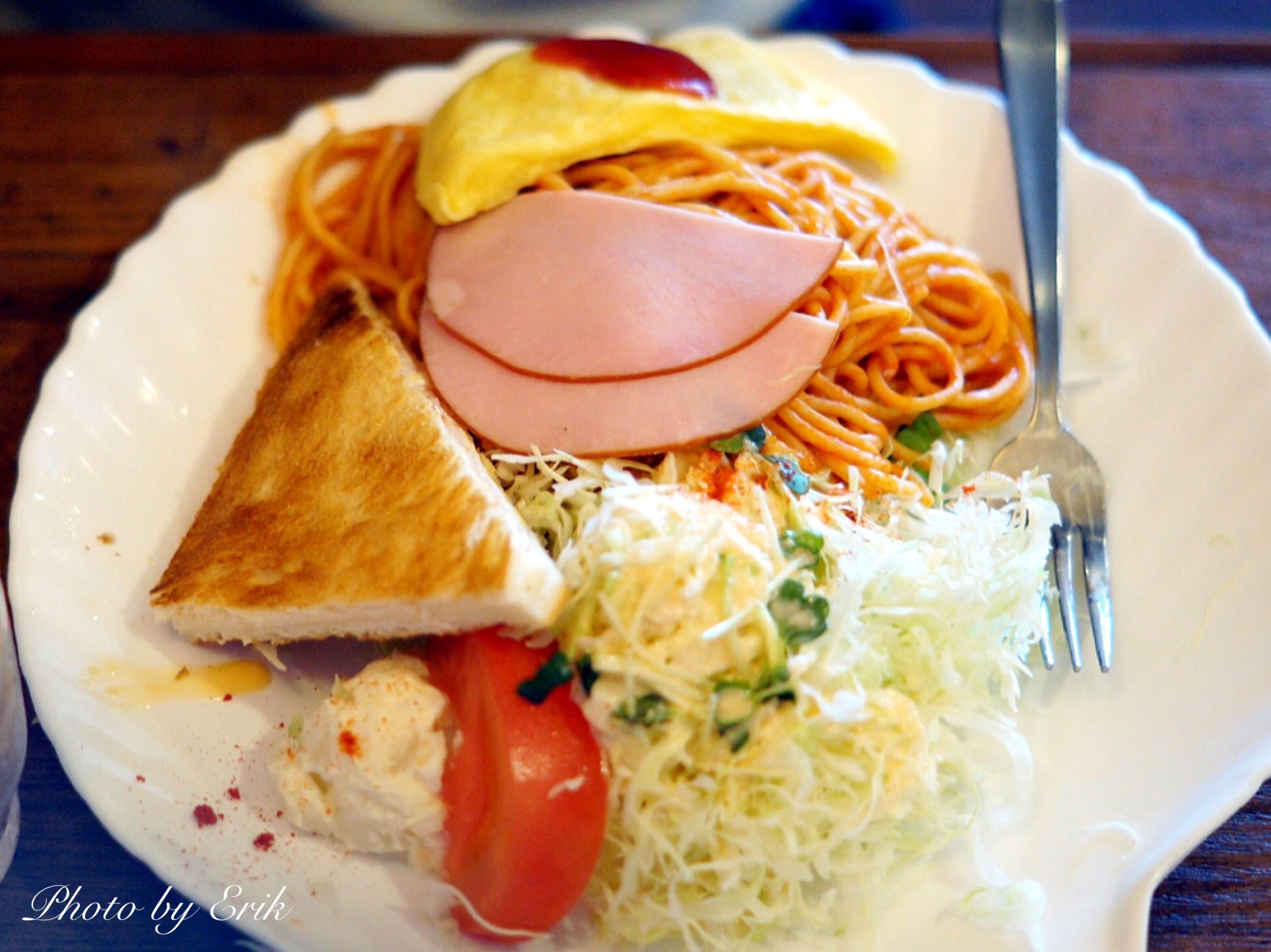 そして、ナポリタン、オムレツ、ハム、サラダが付いてます♪