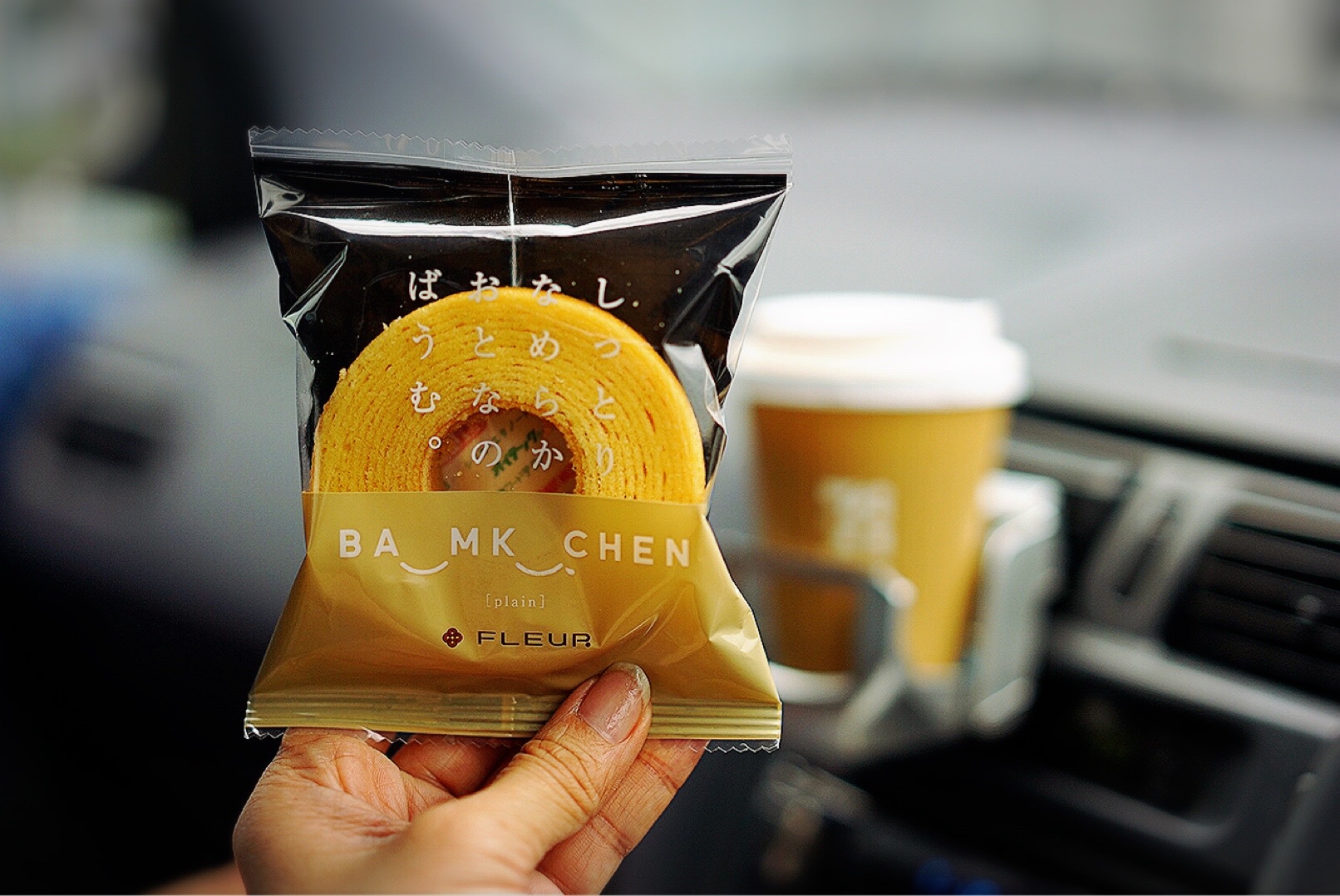 車の中で、コンビニスイーツ(笑)。