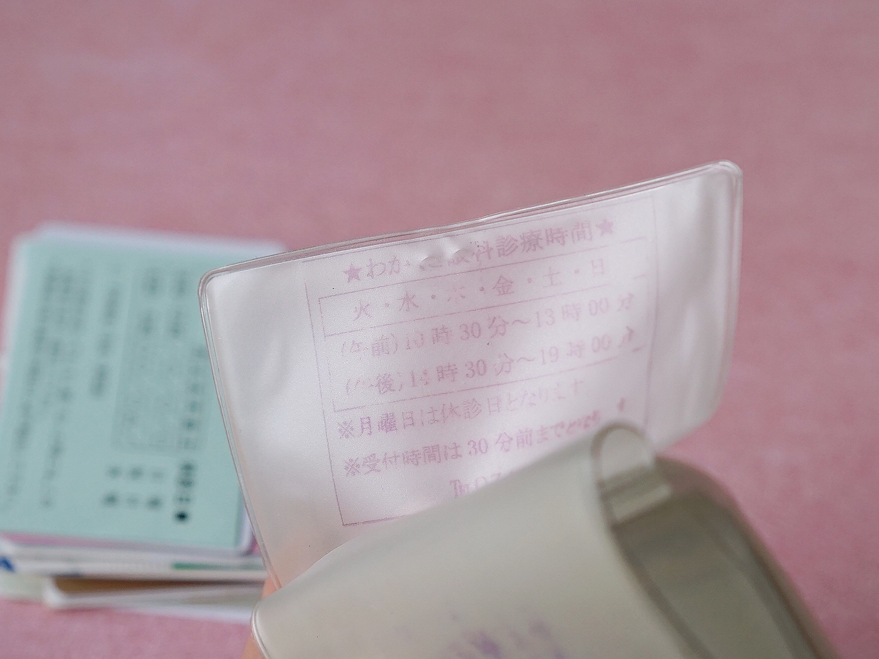 カードケースに、診察時間とかの文字が写っちゃってました(笑)。