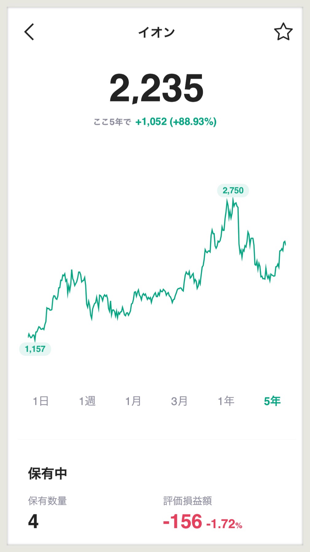 今、イオン株は4株だけ買ってみました。