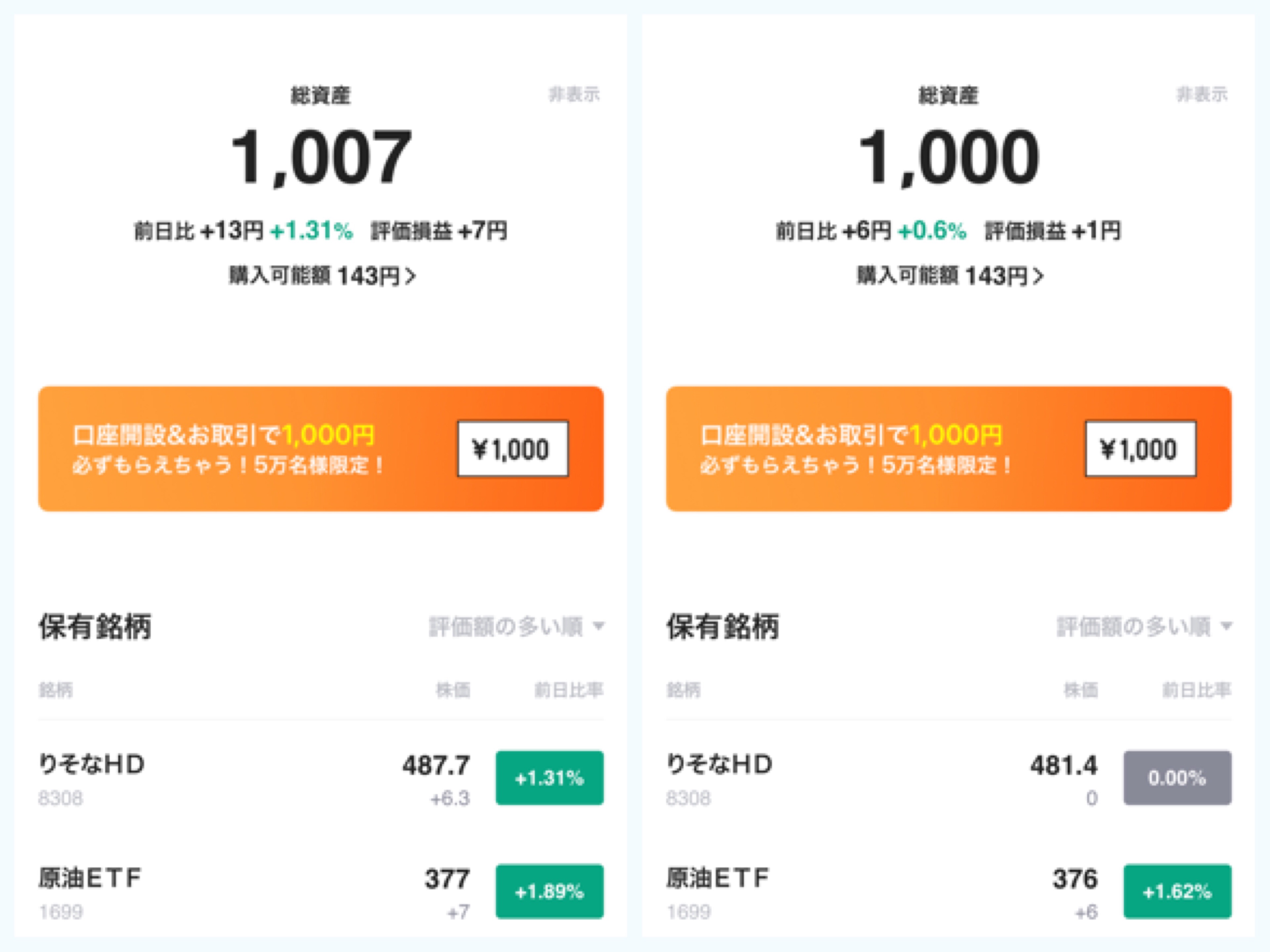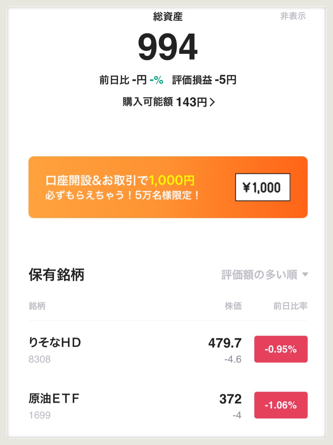 1000円の入金だけで、