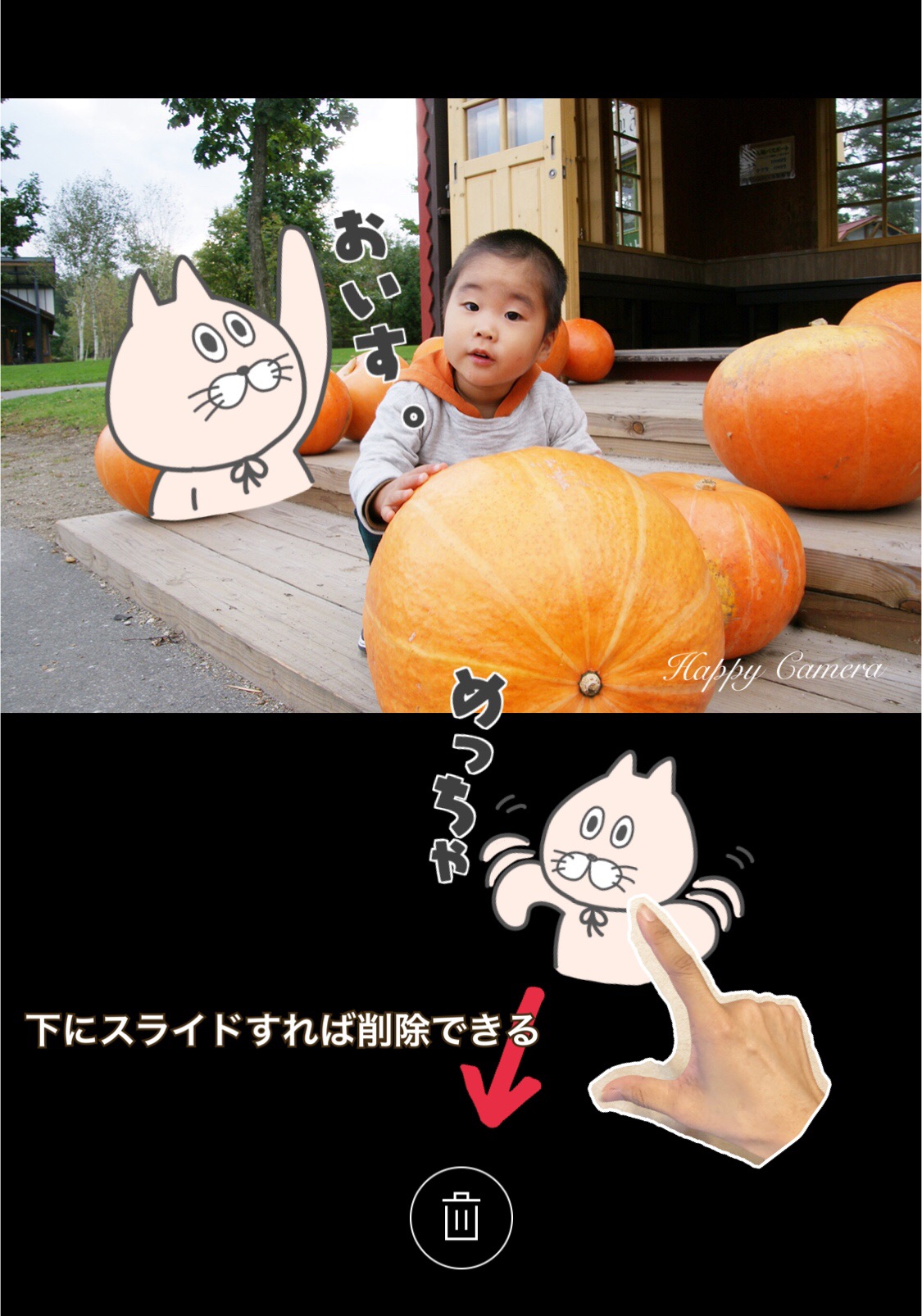 スタンプを下の方にスライドして動かしていくと、ゴミ箱に入れることができますよ♪