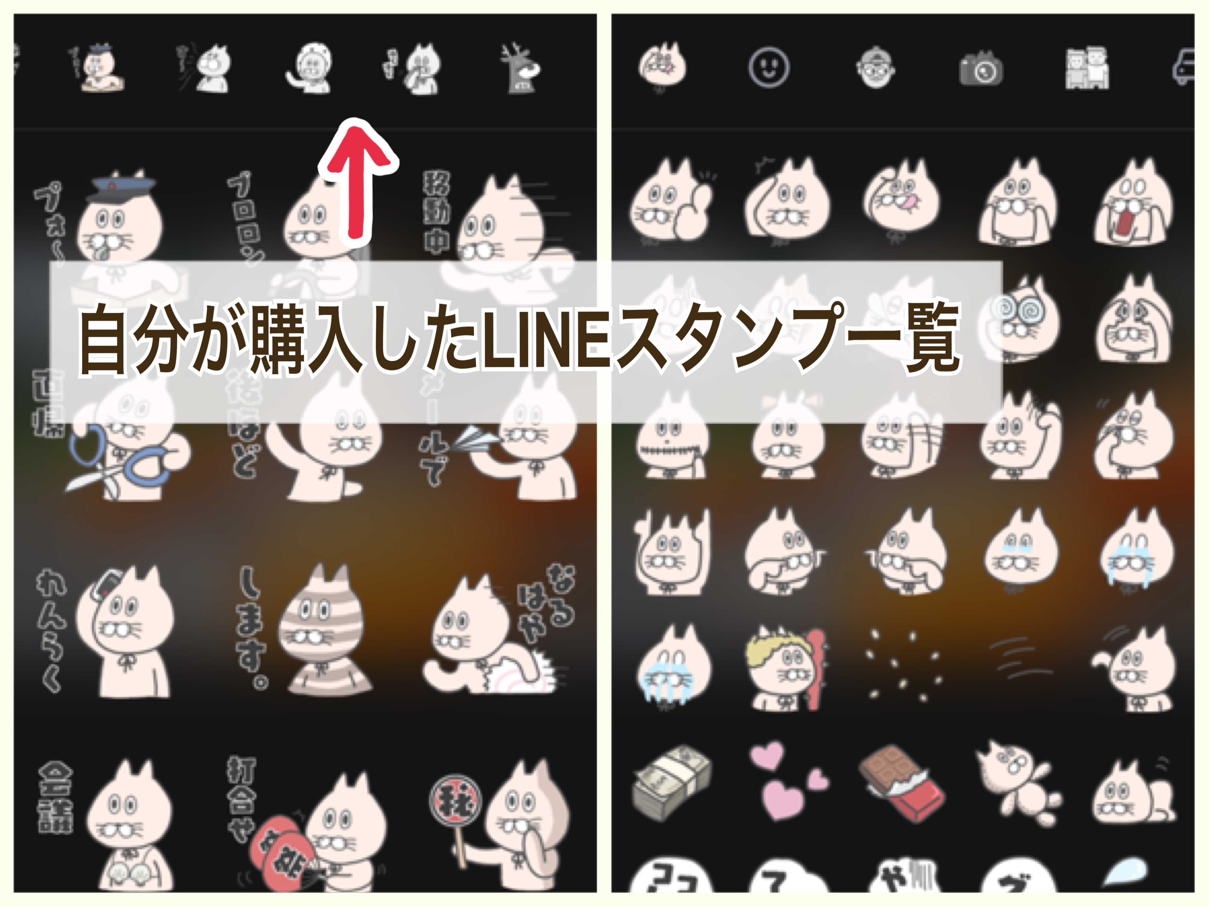 自分が所有(購入)したスタンプ&絵文字の一覧が見れます。