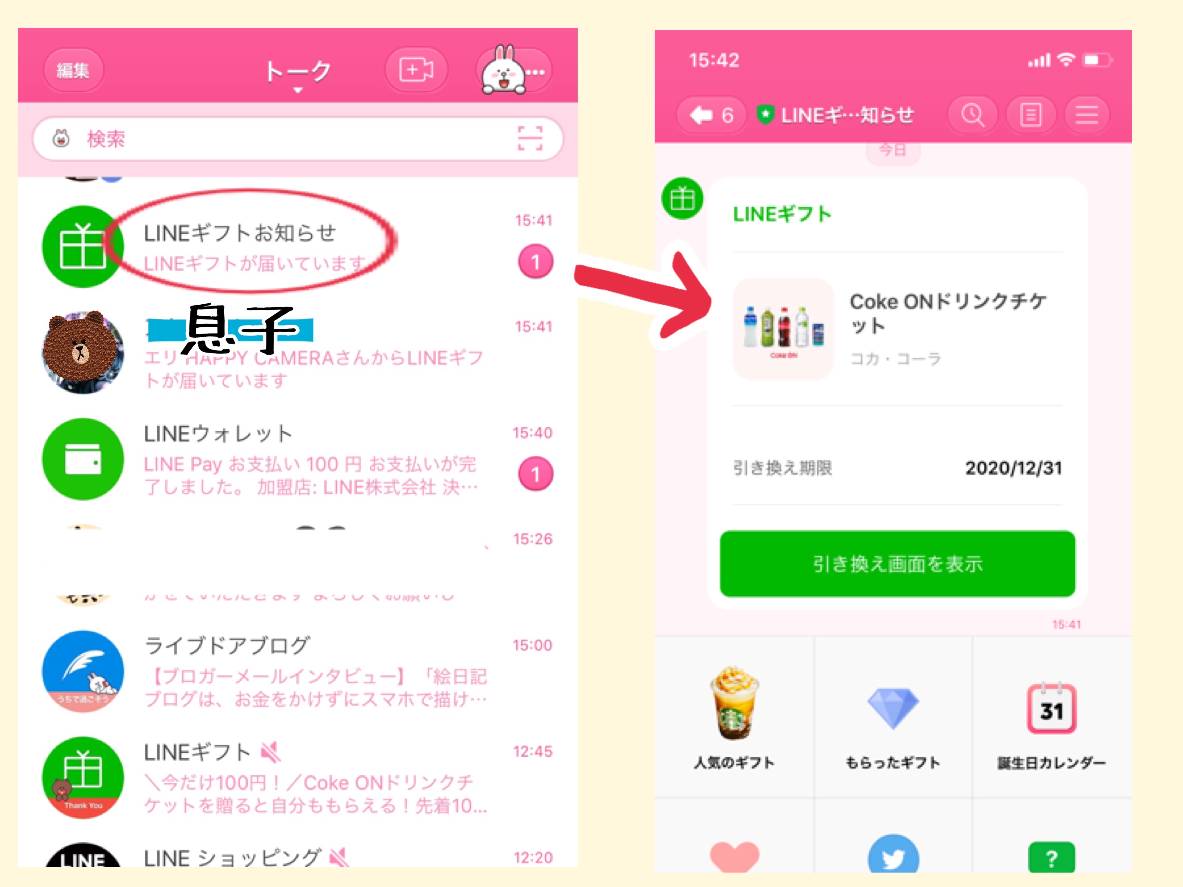 LINEギフトxCokeONドリンクチケット・引き換え方