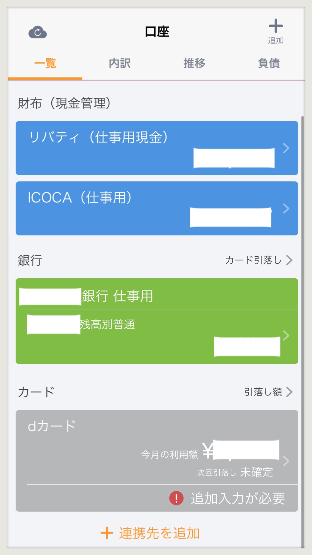 カードや銀行口座の、データ自動取得で