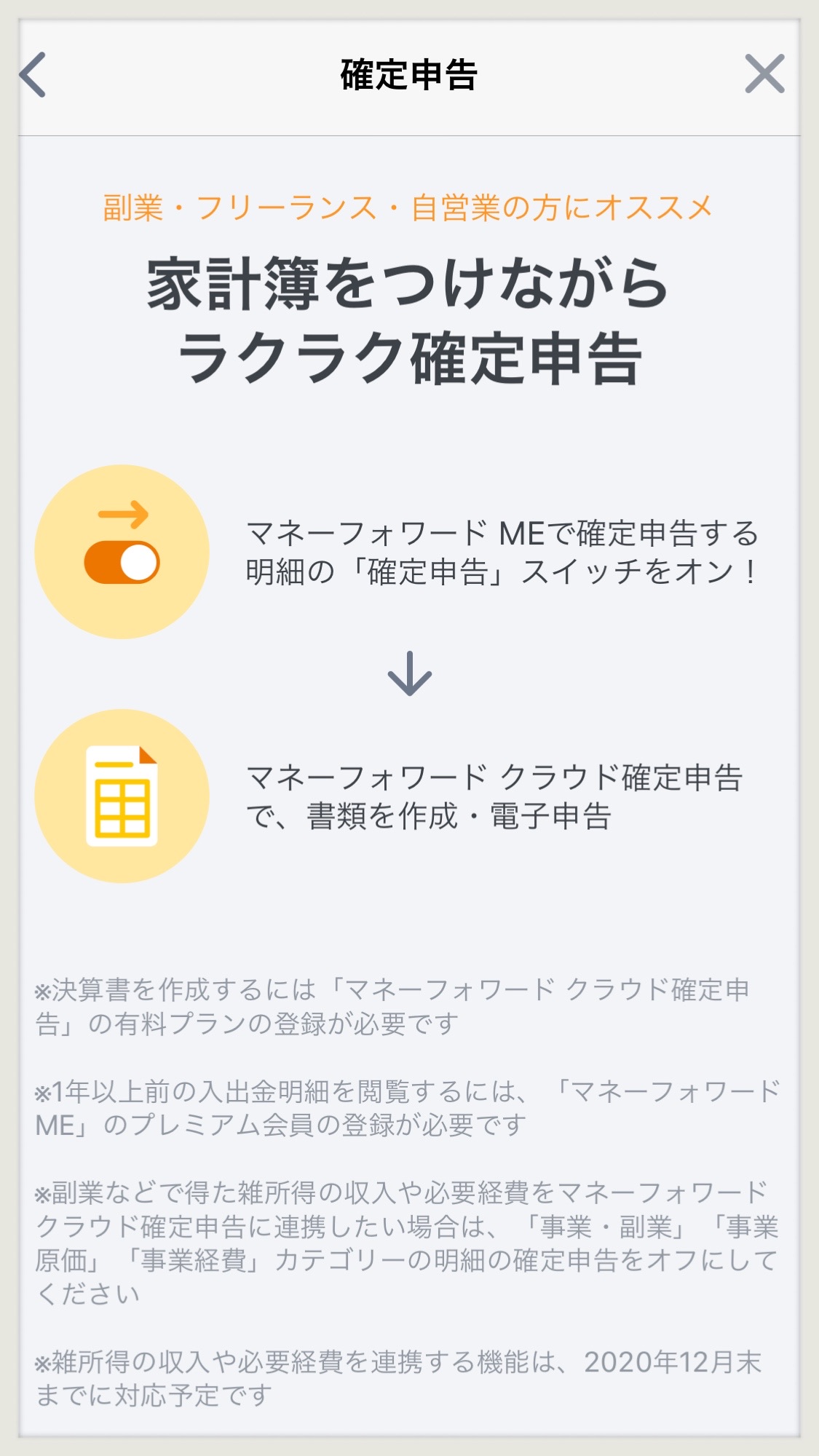 マネーフォワードMEの確定申告機能が