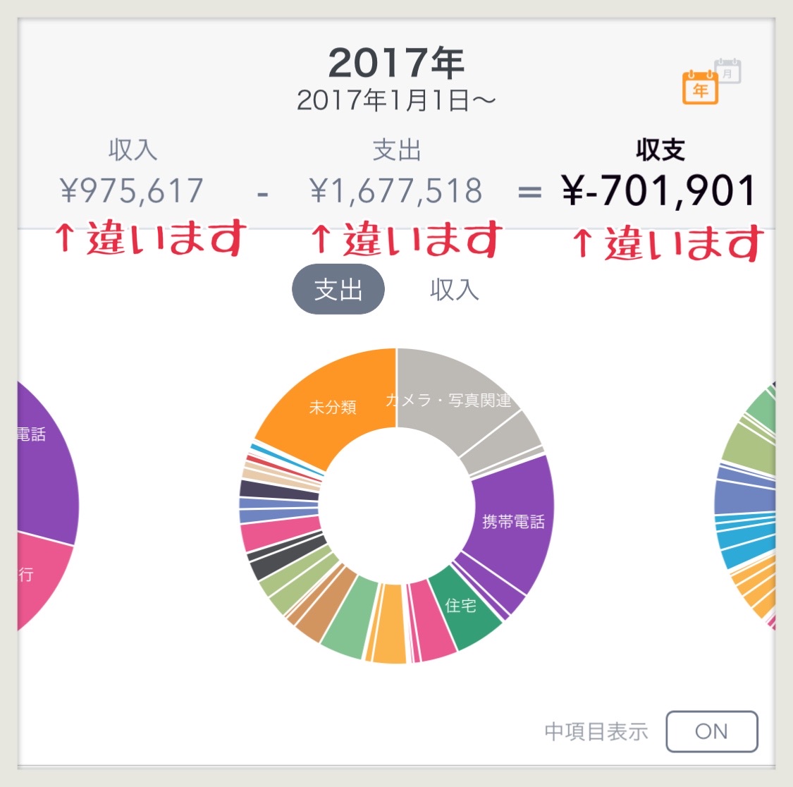 さらに、1年間の総収入・総支出も見れます。