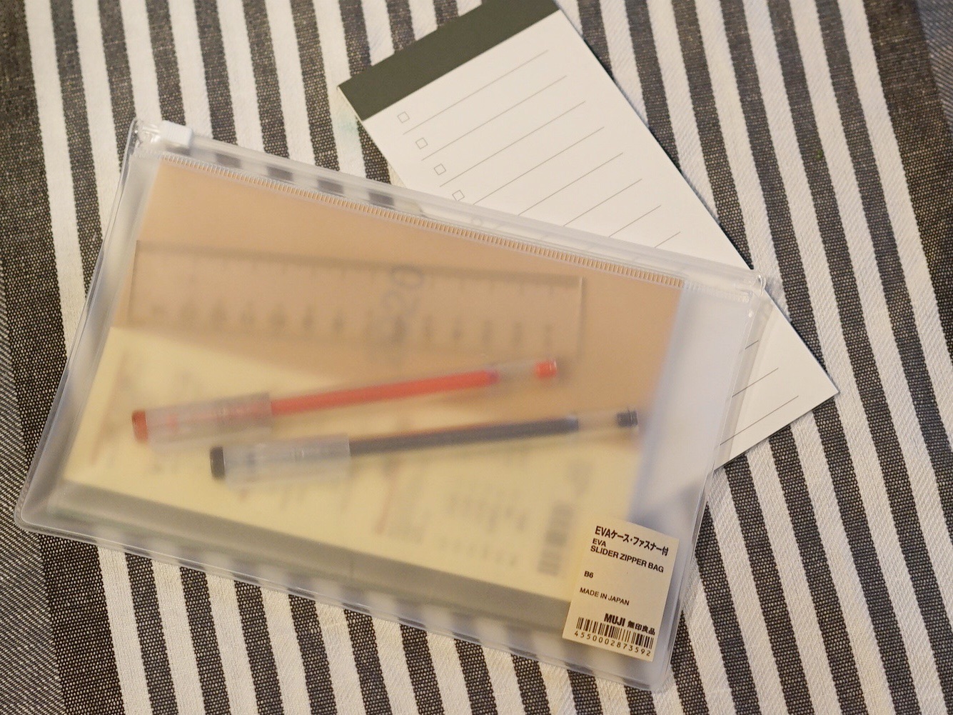 ペンと定規、あと短冊型メモを数枚入れといたら、