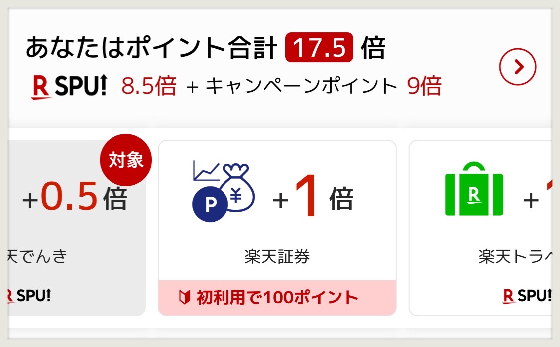 楽天でんきは、SPUが0.5倍アップです♬
