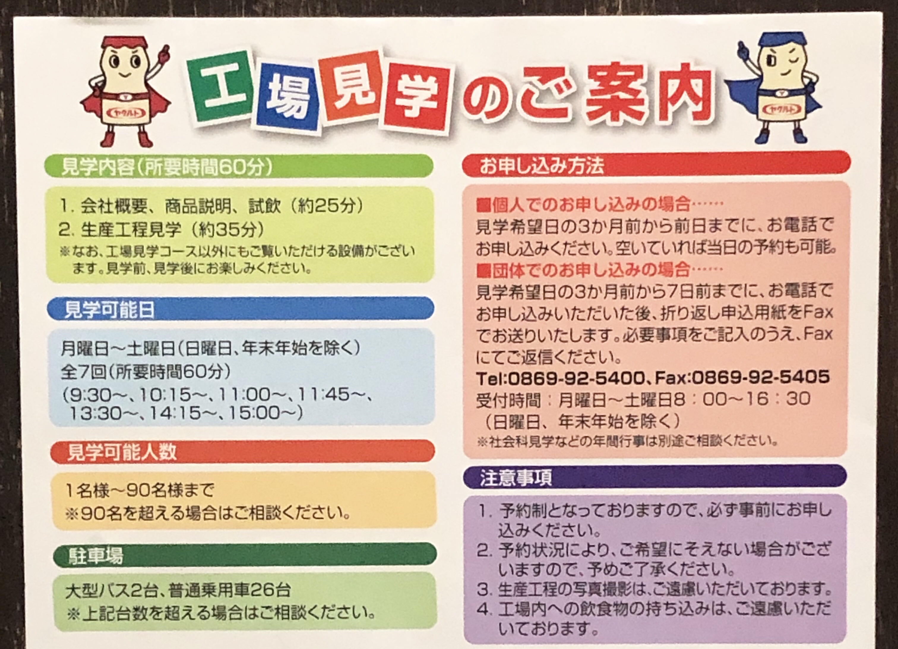 私は、岡山和気ヤクルト工場に行きましたが、全国のほとんどのヤクルトの工場で見学を開催しているようなので、ぜひチェックしてみてくださいね!
