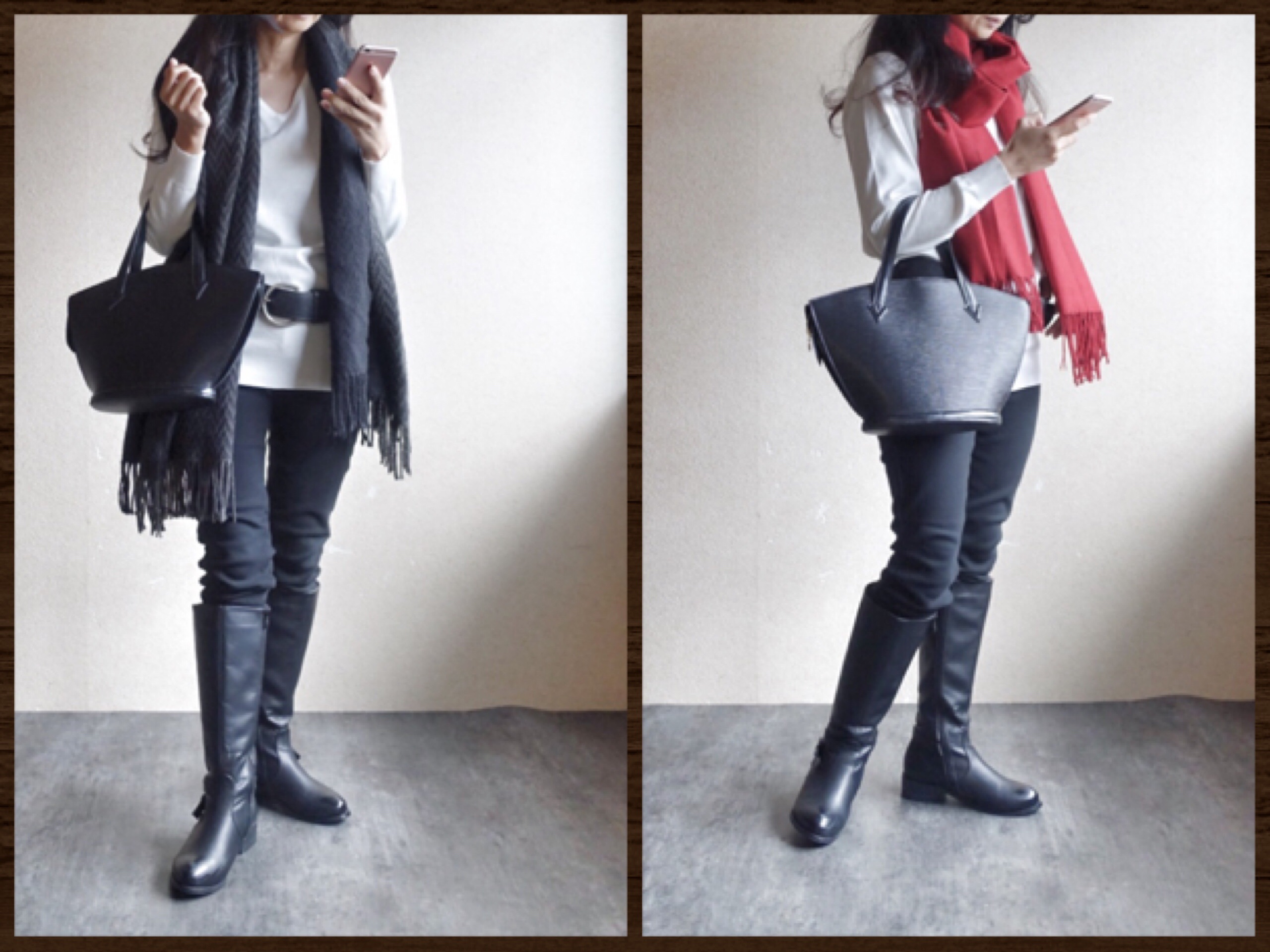 モノトーンコーデで暗いので。